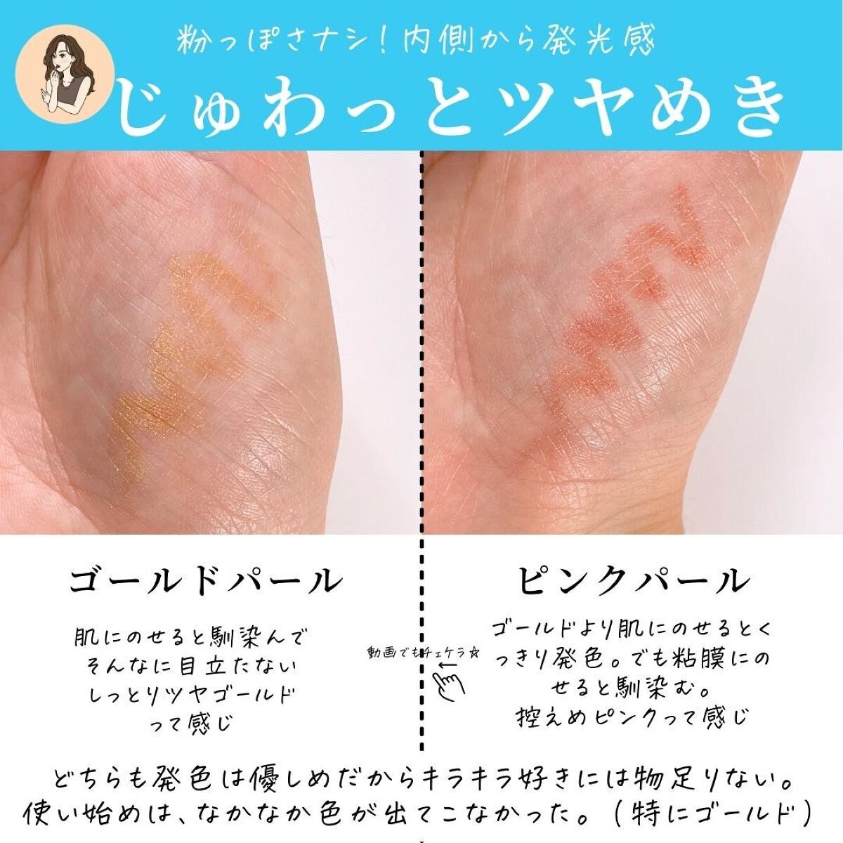 - <ゴールドパール> メチルトリメチコン、トリメチルシロキシケイ酸、(アクリレーツ/アクリル酸ステアリル/メタクリル酸ジメチコン)コポリマー、合成ワックス、ジフェニルシロキシフェニルトリメチコン、脂肪酸(C18-36)グリコール、キャンデリラロウ、リンゴ酸ジイソステアリル、カルナウバロウ、トコフェロール、パンテノール、グリコシルトレハロース、ポリクオタニウム-61、ジメチコン、シリカ、タルク、加水分解水添デンプン、水、水酸化Al、ハイドロゲンジメチコン、マイカ、酸化チタン、ホウケイ酸(Ca/Al)、酸化鉄 <ピンクパール> メチルトリメチコン、トリメチルシロキシケイ酸、(アクリレーツ/アクリル酸ステアリル/メタクリル酸ジメチコン)コポリマー、合成ワックス、ジフェニルシロキシフェニルトリメチコン、脂肪酸(C18-36)グリコール、キャンデリラロウ、リンゴ酸ジイソステアリル、カルナウバロウ、トコフェロール、パンテノール、グリコシルトレハロース、ポリクオタニウム-61、ジメチコン、シリカ、タルク、加水分解水添デンプン、水、水酸化Al、ハイドロゲンジメチコン、マイカ、酸化チタン、合成フルオロフロゴパイト、酸化鉄、酸化スズ