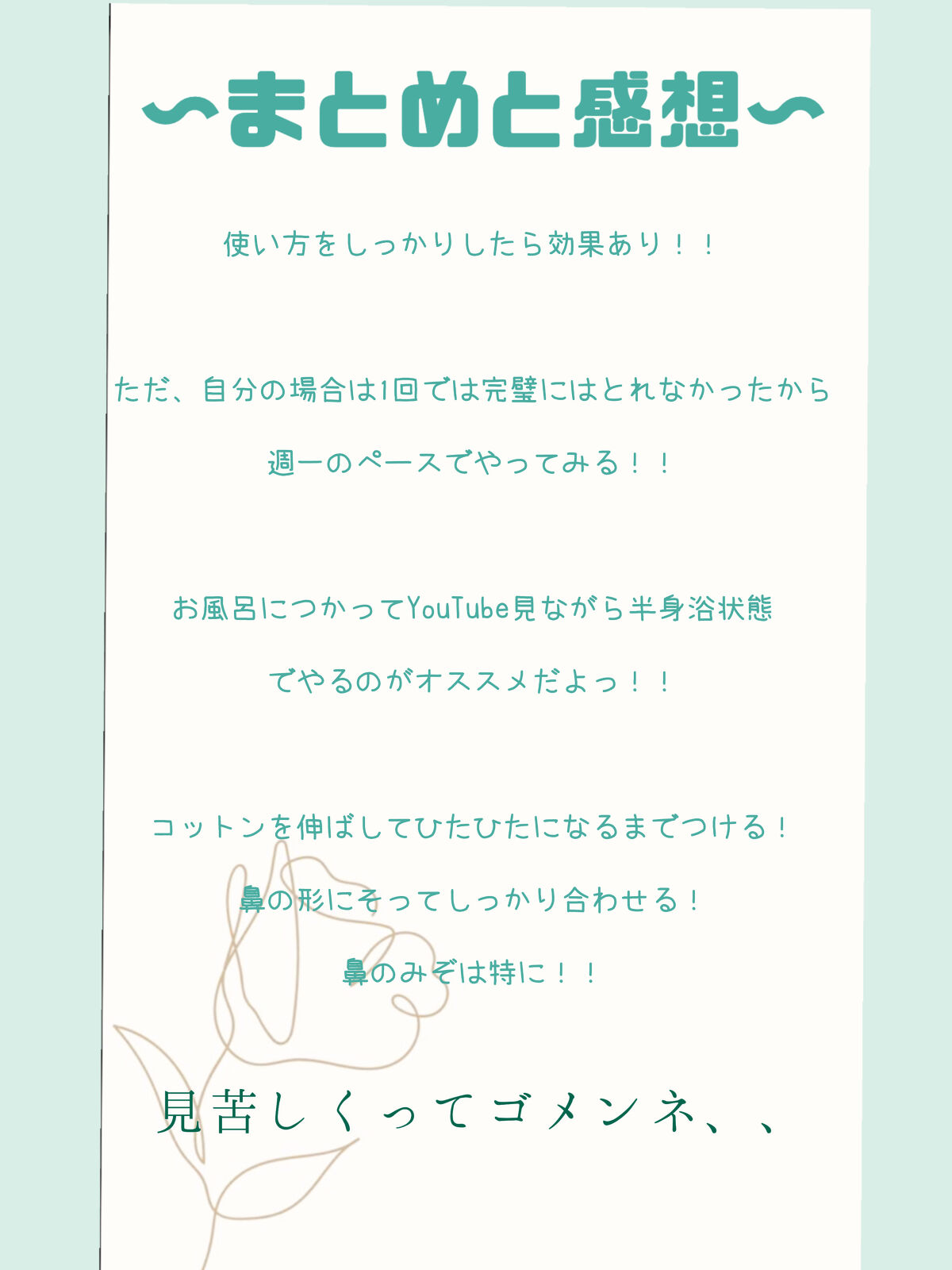 【One-day'syouノーモアブラックヘッド】黒ずみ毛穴には断然推し!私は剥がせるコットン1枚を2分割してひったひたに染み込ませて湯船につかりながら使用(15~20分)その後綿棒でくるくる🌀するとなんということでしょう!ツルッツルになりま...