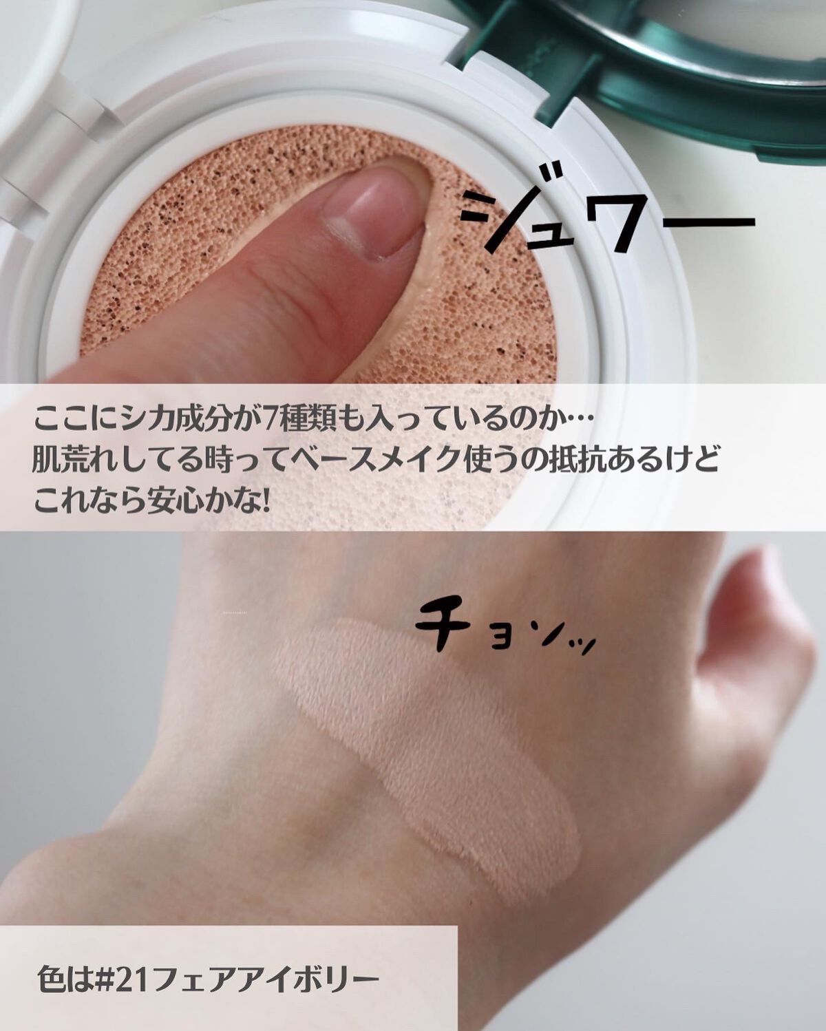 - スーパーシカアンプルの成分が含まれたクッションファンデーションです。 スキンケアをしながら、メイクができるので、肌を整え健やかに保ちます。