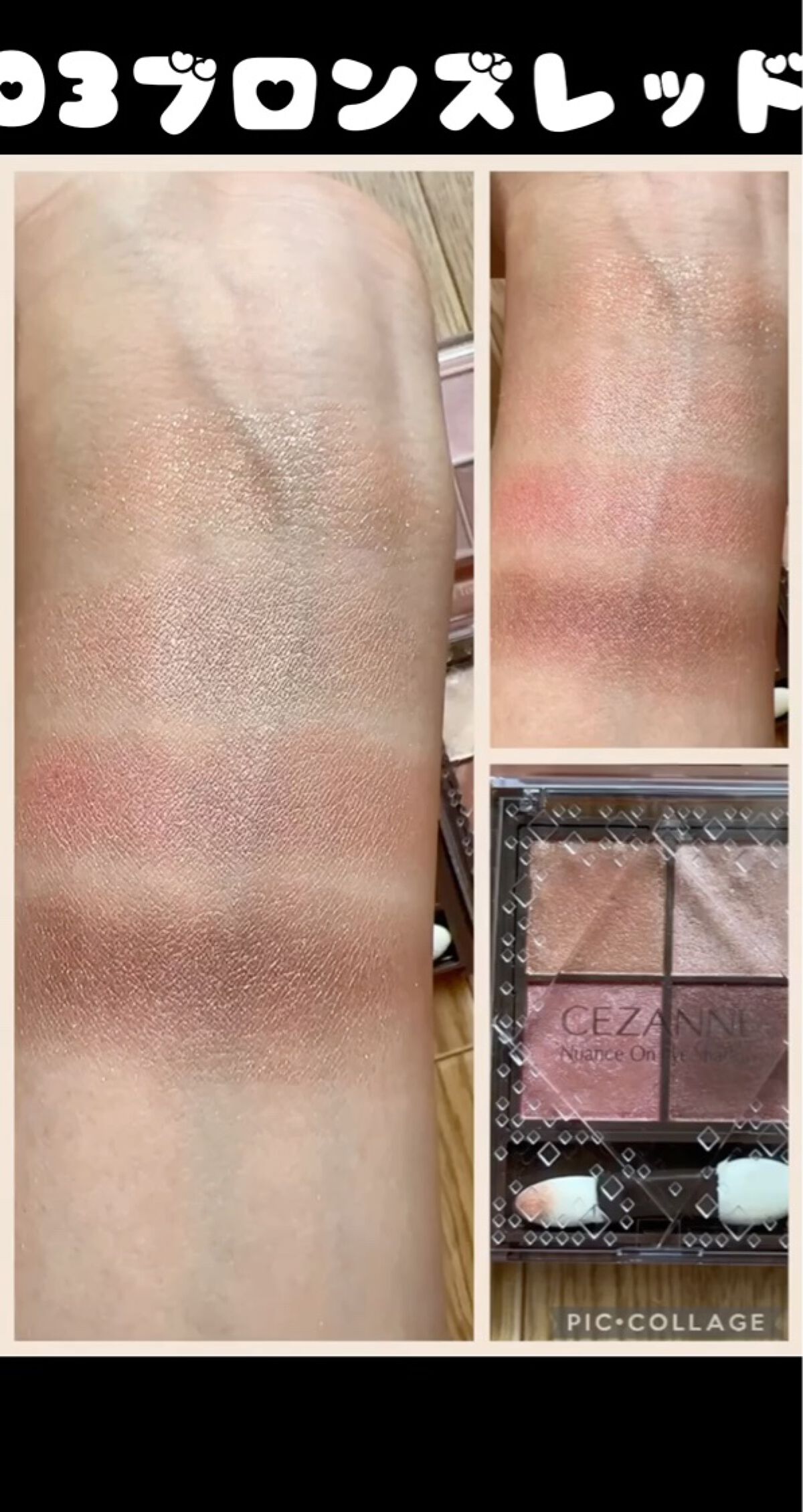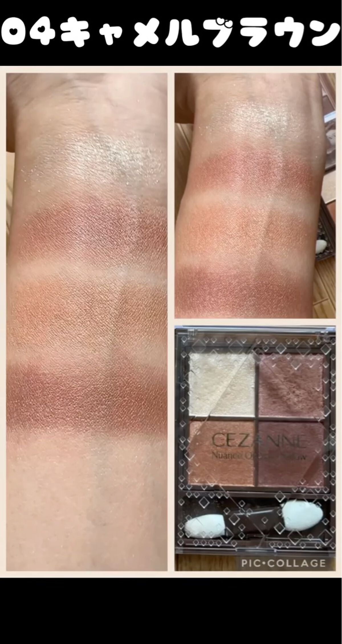 左上のラメもプチプラとは思えないくらい綺麗✨ 01ナッツベージュは少しオレンジっぽいベージュだから、イエベカラーが苦手な方は別のカラーをお勧めします💓 粉質もすごくよくて、粉飛びしないしちょうどいい😻🌟