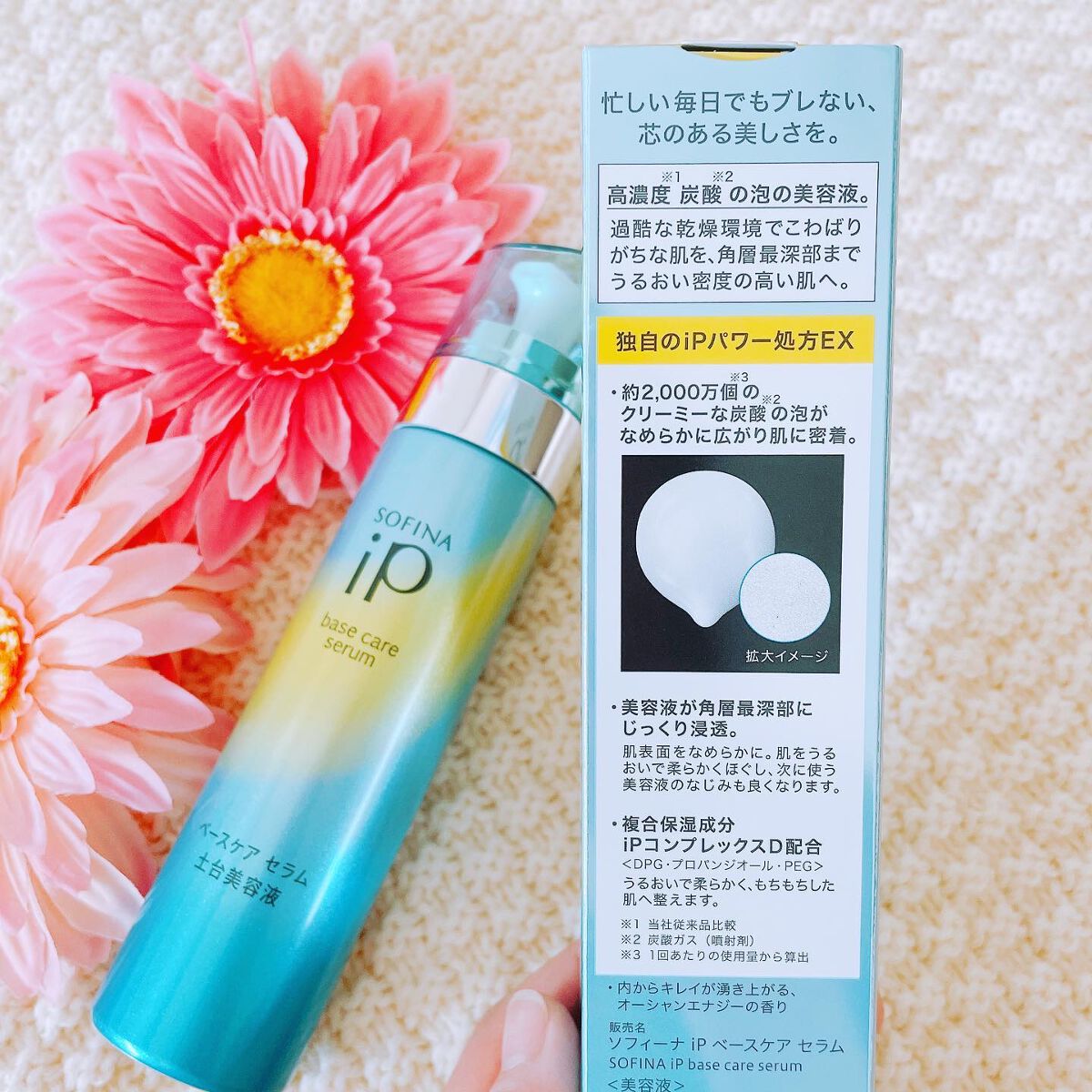 - 高濃度*1炭酸*2の泡の土台美容液。毛穴より小さな約2,000万個*3のクリーミーな炭酸*2の泡がなめらかに広がり肌に密着。美容液が角層深層部にじっくり浸透。肌をうるおいで柔らかくほぐし、次に使う美容液のなじみも良くなります。過酷な乾燥環境でこわばりがちな肌を、角層最深部までうるおい密度の高い肌へ導きます。複合保湿成分iPコンプレックスD配合(DPG・プロパンジオール・PEG)。内からキレイが湧き上がる、オーシャンエナジーの香り。 *1:メーカー従来品比較 *2:炭酸ガス(噴射剤) *3:1回あたりの使用量から算出
