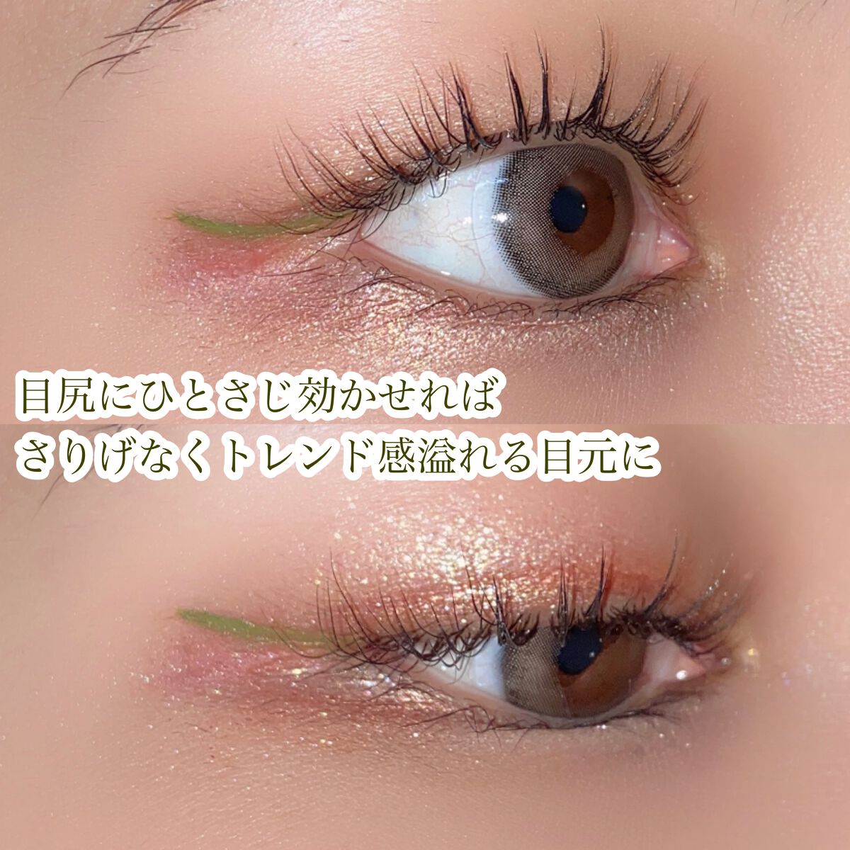 しっかりグリーンのアイライナー!沢山使ったのでレポします🤭 こちらのピスタチオラテはいくら描き重ねても色が変わらず、重宝しました✨ テラコッタメイクやピンクメイクに合わせるのがお気に入り。ホワイトのアイライナーを二重ラインに引いて抹茶ラテメイクみたいにするのも可愛いです。