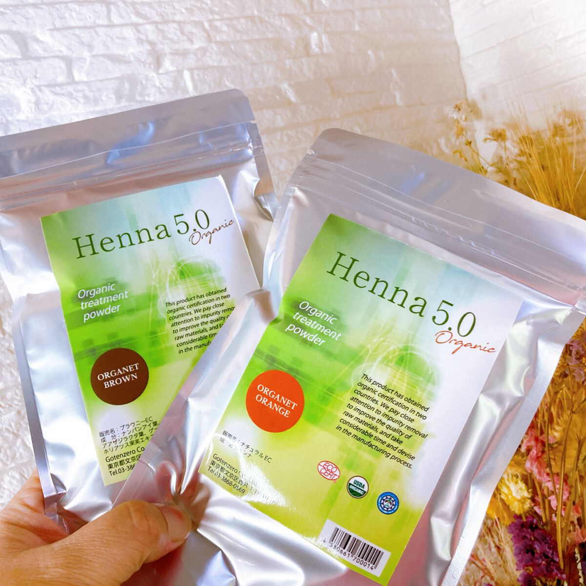 ヘナ5.0は100%天然ヘナかつ、純度が99%と高品質な商品💕 オレンジはそのまんまオレンジ色に染まった。 中々使いづらさは有るものの、一回でちゃんと染まったので、やった価値は有ったと思う👍