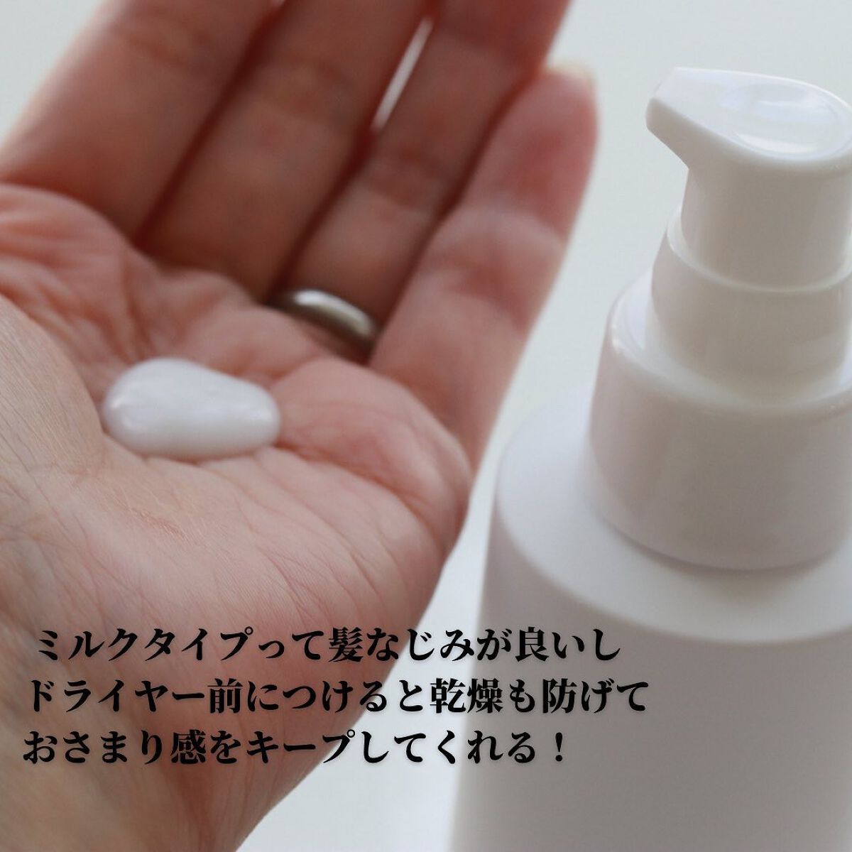 フィニッシング時、ドライヤー前のプレスタイリング剤どちらでも使えます。 くせや広がりやすい髪、硬い髪に潤いと柔らかさが続くようにしてくれるヘアミルクです。 使ってみるとかためな質感ですがべたつかず、まとまりをキープし毛先が落ち着きます。 湿気による広がりも抑えるので、梅雨時期や夏場にピッタリ! サボン系のさわやかで心地よい香りも◎