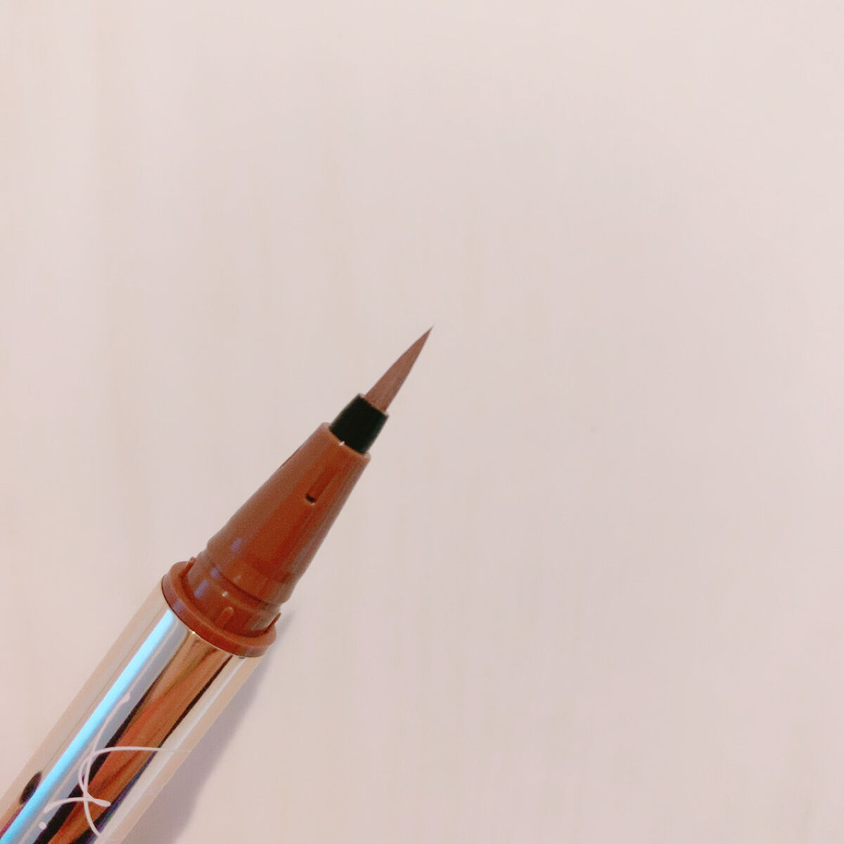 めちゃくちゃ筆が細くなっていて 目尻は描きやすいけど瞼にアイラインを ひくときに筆先が逃げがち。 そこがデメリットですがお湯で落ちるし 色の馴染みもすごくよくて◎ あと、ペン自体が高級感出たし ポーチの中でも一目でK-Paletteの アイライナーってわかるのも良い! 落ちにくいし他の色で涙袋描くのも 筆細いし滲みにくいし良さそう〜