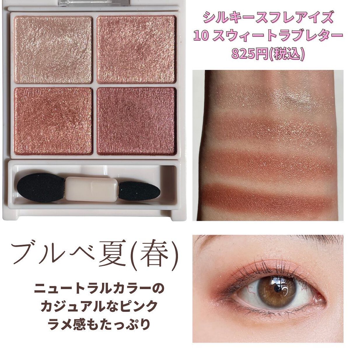 粉質がとにかくしっとり…!デパコスで感じるやつ…! どのパレットもブラウンベースで普段使いしやすいカラー展開です。 オレンジベースにシルバーラメが混ざっていたり コーラルベースにローズピンクやココアブラウンが混ざっていたり! あまり偏らずに使えるのがこれまた好きなポイントっ🫶 かっこいい雰囲気ならウインターグレイ、女性的な雰囲気ならティーローズ、大人っぽいならイノセントピーチ、カジュアルならオレンジアーモンド パーソナルカラー分からないよ〜という方は 過去投稿に似合うコスメを選ぶポイント上げているのでやってみてね🥰