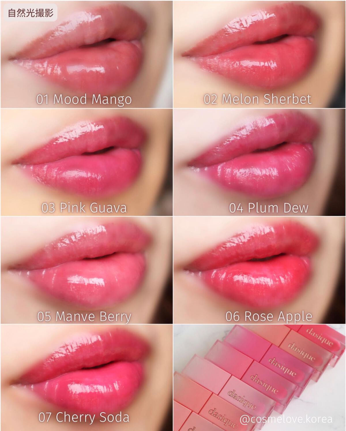 #PRdasiqueさんからジューシーデューイティントをいただきました🩷うる艶むっちり!発色ばっちり!色残りしっかり!な使い心地🥰01~07がイエベさん向け、08~14がブルベさん向けになってて分かりやすい♡私は07と14を試させてもらったよ...