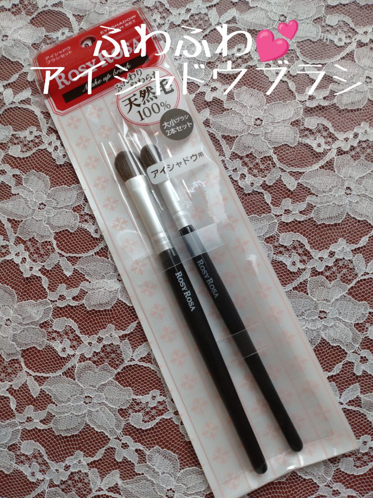 ロージーローザアイシャドウブラシセット ¥528天然毛100%のパウダーアイシャドウ専用ブラシ。大きいブラシはまぶた全体やフワッとぼかす用、小さいブラシはまぶたのキワや締め色にオススメ。チクチクせず、肌辺りが良かったです。アイシャドウをふんわ...