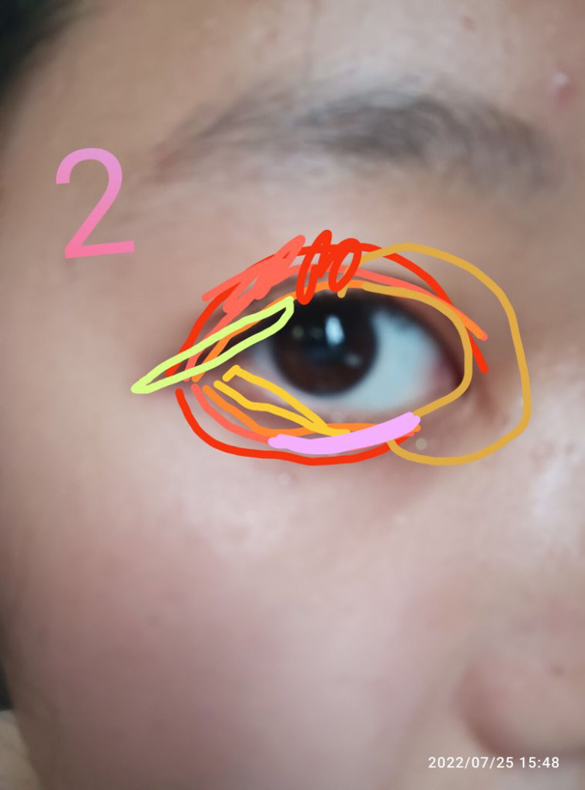 量産系、ふんわりとしたメイクに挑戦!!まずはエチュードハウスのアイパレットの方の1番をご覧下さい!赤い部分をアイホール全体に広げてミンクとオレンジをだんだんにします。黄色の部分は赤いラメなので目の下の方に付けてます!。橙色は金色のラメですなの...