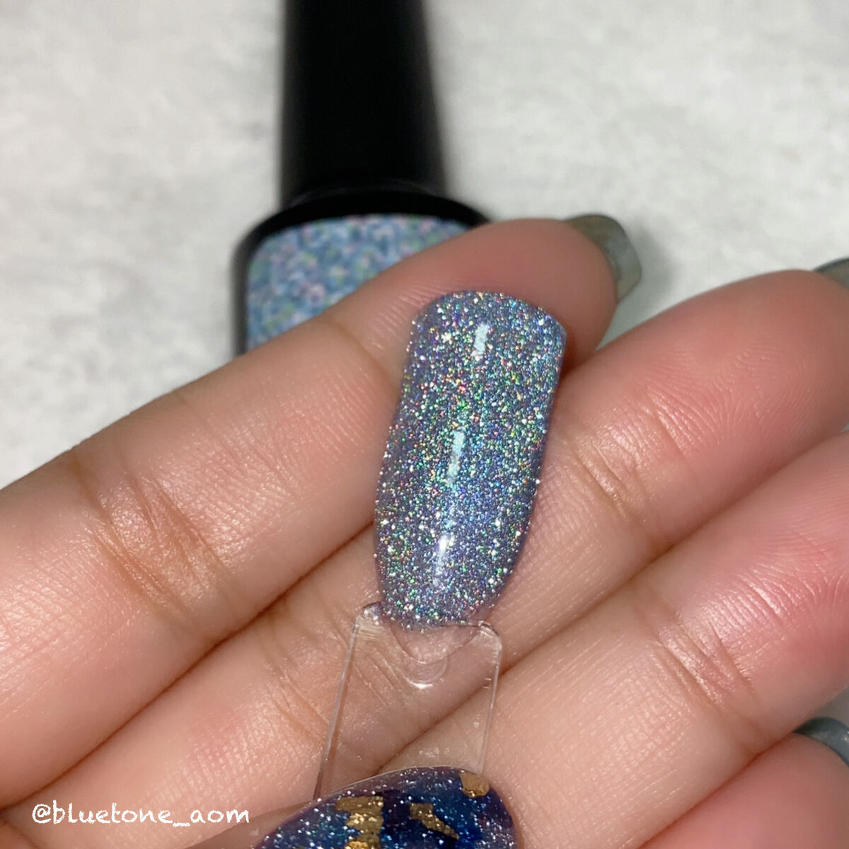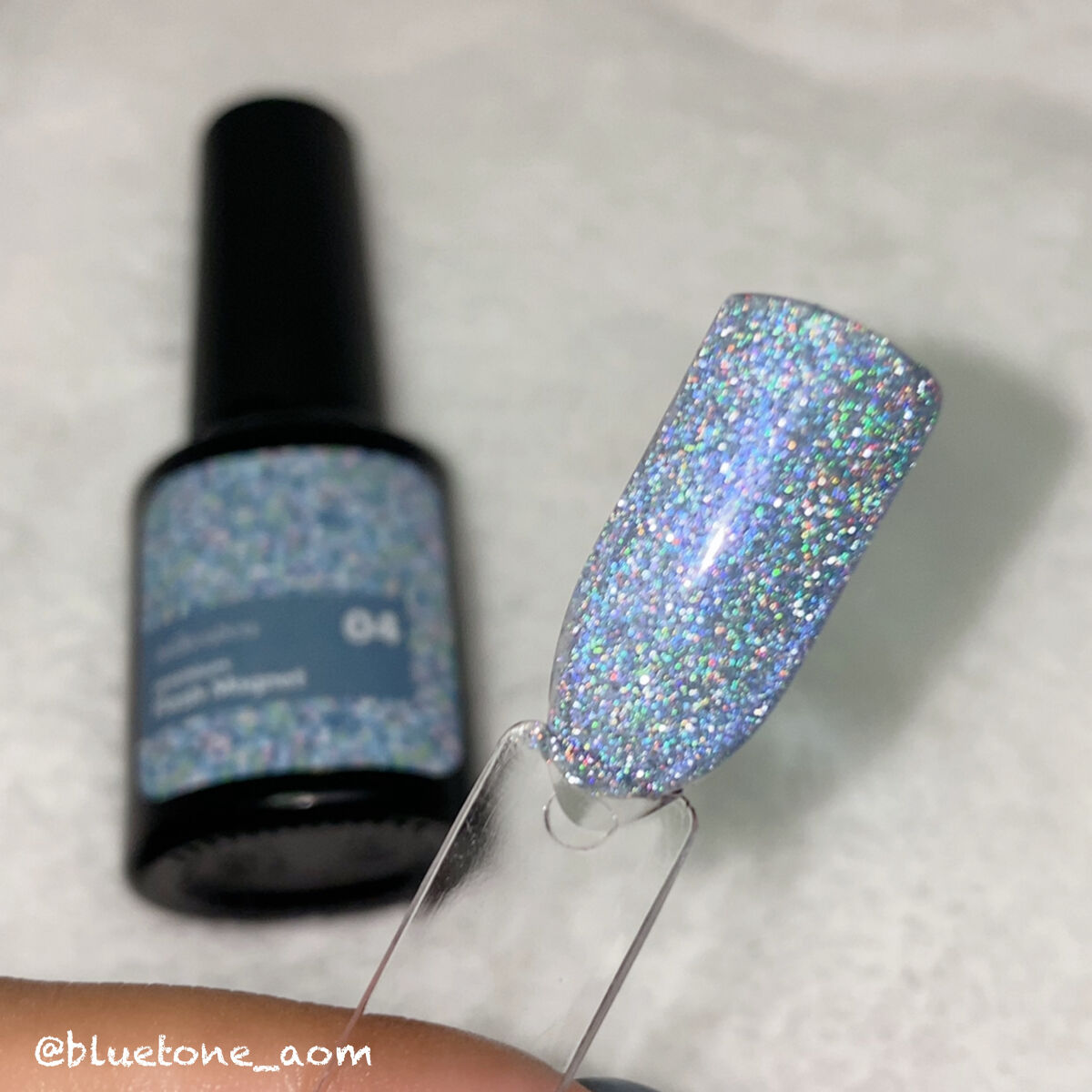 ラメがしっかりしてるし クリアカラーが入ってるから オーロラパウダー無しでも 充分キラキラしました! 反射強めのフィルムなので 実物はもっと うるうるとキラキラが強いです! ビー玉みたい🥺 ネイルシール長持ちさせたいけど ちょっと飽きてきたな〜って時とかに 全然違った印象になるのでオススメです! Seriaのベースジェル 本当にうるうるネイルしやすいので オススメしたい🙆♀️