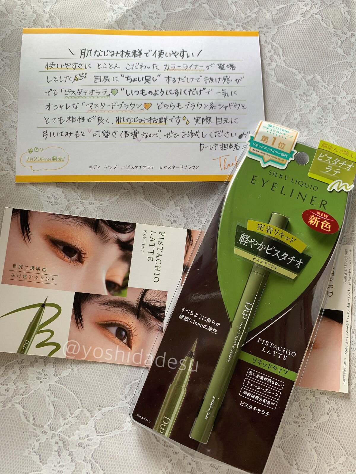- 筆先までずっとなめらか、目尻で感動するリキッドアイライナー。 必要な量が肌にのる新設計で、まぶたの上をすべるような、滑らかな描き心地。しなやかでコシのある筆が、筆圧のコントロールを容易にし、太いラインも細いラインも思い通りに仕上げます。水、汗、涙に強いウォータープルーフタイプなのに、通常洗顔で簡単オフ。肌に色素が残らない顔料を使用。5種類の美容液成分を従来品の200%配合し、メイクしながら目元ケアまで。 ●ブラウンブラック ※2020年9月12日 バラエティショップ先行発売 ●漆黒ブラック ※2020年12月頃発売予定 ●ナチュラルブラウン ※2020年12月頃発売予定 ●シフォンブラウン 「毎日メイクに透明感と抜け感」 ブラウンでも、グレーでも、ベージュでもないニュアンスカラー。 自然な印影で素の目元を際立て、頑張りすぎない、ふんわりとした目元に。 ●アプリコットブラウン 「じゅわっと血色感。 肌に馴染むおしゃれカラー」 温かみのあるアプリコットがじゅわっと滲む血色感を目元に演出。 肌馴染みが良いので、カラーライナーに抵抗がある方もブラウンの延長線上で楽しめる、使いやすい色味です。 ”ちょっとオシャレ”な空気感を演出するカラー。 ●ピンクショコラ アイライナー 「ピンクが溶け込む濃厚ブラウン」 肌馴染みが良く、目元にじんわり血色感をプラス。 さりげなく女性らしさが加速するようなカラー。 ●ピスタチオラテ (2022年7月29日(金)発売) 「“目尻”に抜け感アクセント」 肌に馴染むのに映える絶妙なグリーン。 トレンドカラーに“くすみ”と“抜け感”をプラスしたまろやかな発色。 ●マスタードブラウン 「“イエロー”が揺れる、大人の洒落色」 (2022年7月29日(金)発売) まるで太陽のような暖かさを感じる新しいブラウン。 ほんのり感じるイエローでメイクが一気に垢抜ける稀有な色。 ●シフォンピンク(2023年2月10日発売) 「ふんわり柔らか"まろみピンク"」 甘くなりすぎない青みニュアンスで目元の透明感UP。 目元を引き締め、ピンクメイクにありがちな腫れぼったさを解消。 ●ミルクカプチーノ(2023年4月21日発売) まろやかな深みの“優しい締め色” どんなメイクにも合わせやすいカラー。 自然な陰影でさりげなく目幅を拡張します。 ●グレーカシミア(2023年10月1日発売) ブラウンがほんのり溶け込んだ、暖色グレー まろやかな発色で、パーソナルカラーを問わず肌に馴染む 目元の陰影になりすまし、抜け感と目力を欲張りに叶える ●ダークフィグ(2024年6月1日発売) するする”なめらか。描きやすいのに、落ちにくい。 クッキリ可愛いほの甘ダークブラウン ●ピーチモカ(2024年8月1日発売) ふわっと自然に盛れる“桃色ブラウン” ほんのり血色感で目元にうるみ感を演出 ●スターダストブラウン(2024年12月11日発売) キラッと繊細に輝く''星屑ブラウン'' 透け感のあるダークブラウンの色味とラメの輝きが、目元に艶のある立体感を演出 ●チャコールモカ(2025年4月10日発売) 目元を締める''深みグレージュ'' 黄みや赤みに偏りすぎない絶妙な色設計で、自然に目元を強調