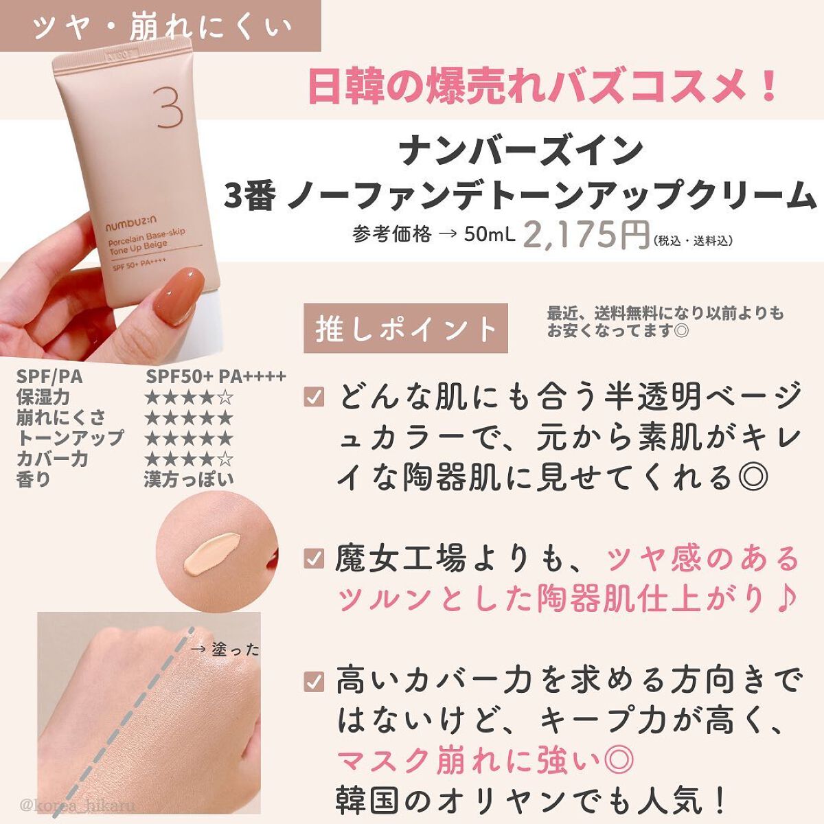 numbuzin 3番 ノーファンデ陶器肌トーンアップクリーム | 2,310円 |