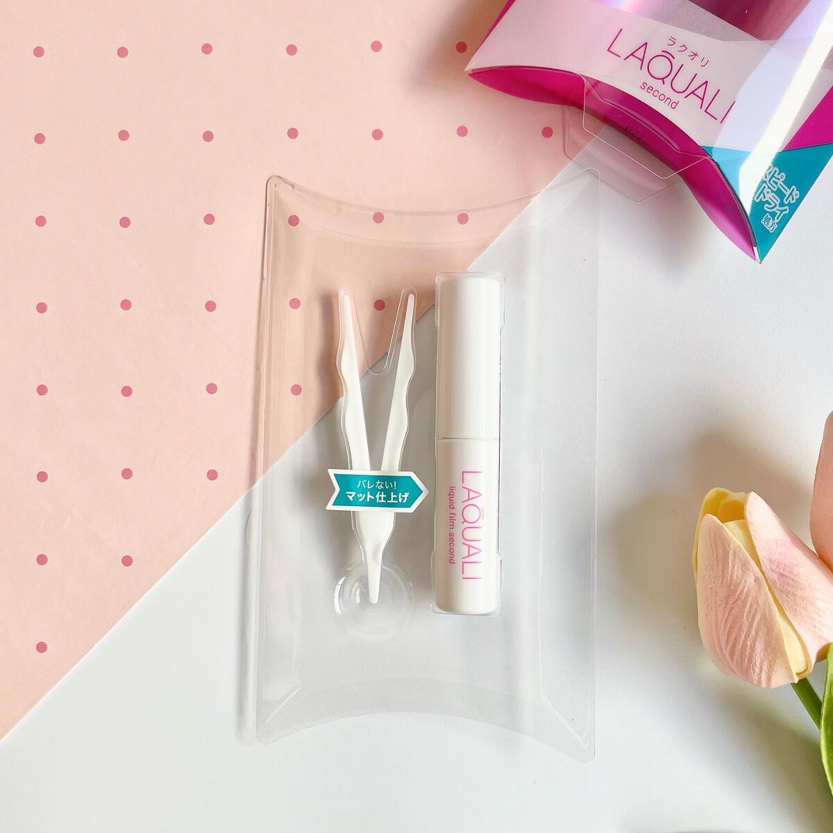 ラクオリ リキッドフィルム 2 シナモロールとのコラボパッケージ🐰 1,540円(税込) まぶたをくっつけないから、瞬きがラクで自然なのが良いなぁと思ったよ! お湯オフだよ!落としたいときはぬるま湯を含ませたコットンなどでふやかしてオフするだけだから簡単♪