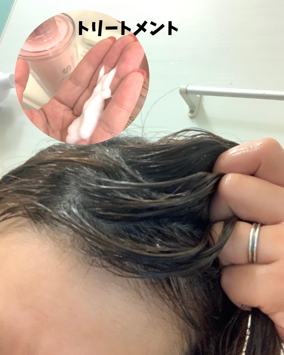 カラーシャンプーは青色で、水を含ませてよく泡立ててて髪を洗ってくよ! トリートメントも色は紫っぽいブルーでこちらも揉み込みながら馴染ませていくと色の入りがいいかも。 トリートメントも、こっくりな感じだけど 馴染みやすく洗い上がりはつるんって感じ
