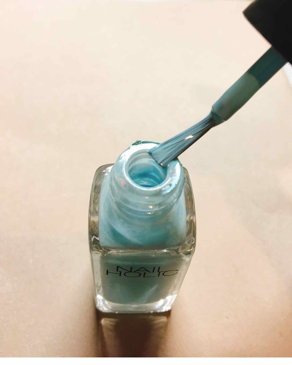ネイルホリック初めて使ったけど、他と比べると乾きが悪い気がする…。 もっとうっすく塗ったらいいのかもしれないので、次回もっと薄く塗ってみます。 発色良いかなと思います。ハケの流れた方向が見えるようなパール系のネイルです。 トップコートのおかげか、1週間経ってもほとんど剥げてないです。