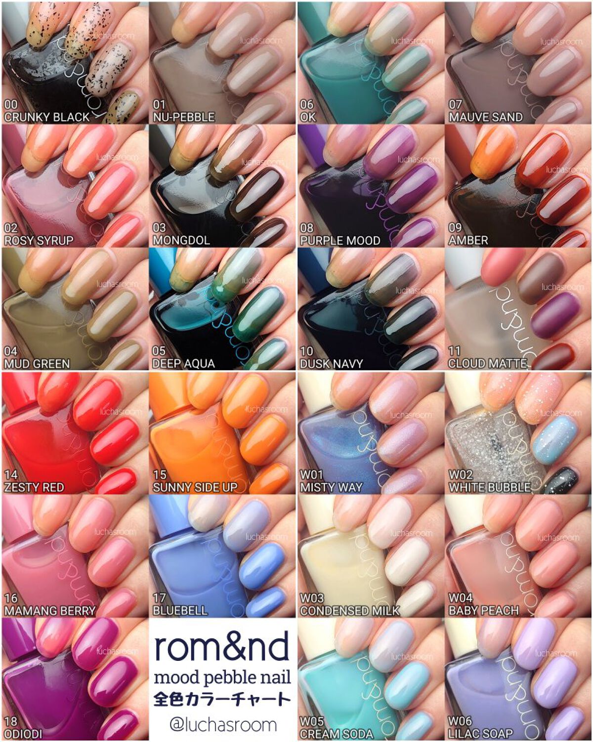 - 指先に玉石のような、ならかな光沢をとどめる。塗った瞬間から綺麗なツヤと光沢を維持し、重ねて塗っても透き通ったカラー感を鮮やかにとどめる、素早い乾燥力のナチュラルカラーネイル。「ロムアンド」の次世代型ネイルです。
