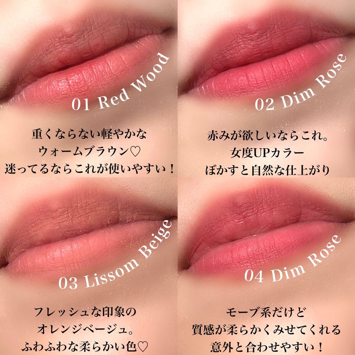 テクスチャーはまるでチョコムースを塗っているよう🍫 香りも甘くておいしそう🤤 マットリップの大敵、縦皺の目立ちが他のものほど気にならず マットリップ嫌いな人も これなら付けたい!って思えるはず❤️🤎 指でぼかすと、公式モデルさんのような ほわんっとしたグラデになり、 ちょっとオーバーぎみにぼかすのが 韓国女子っぽくなる☁️♡ 落ちないリップ特有の ヨレ方が汚い、ムラになるなどもない🙆♀️ 時間が経つと徐々に 全体にふんわり薄くなる感じ☁️ ムラなどがなく落ちた時の不快感ゼロ☁️ メイク直しの重ね塗りの時もきれい✨ マットリップは リップバームつけてから塗るのがおすすめだけど こちらのティントの場合下地に塗りすぎると、 上から塗った時上手く馴染まなかったので リップバームは薄めに仕込むのがおすすめ♡💄 マットリップの不快感をなくした 神質感な新作です🥺❤️❤️