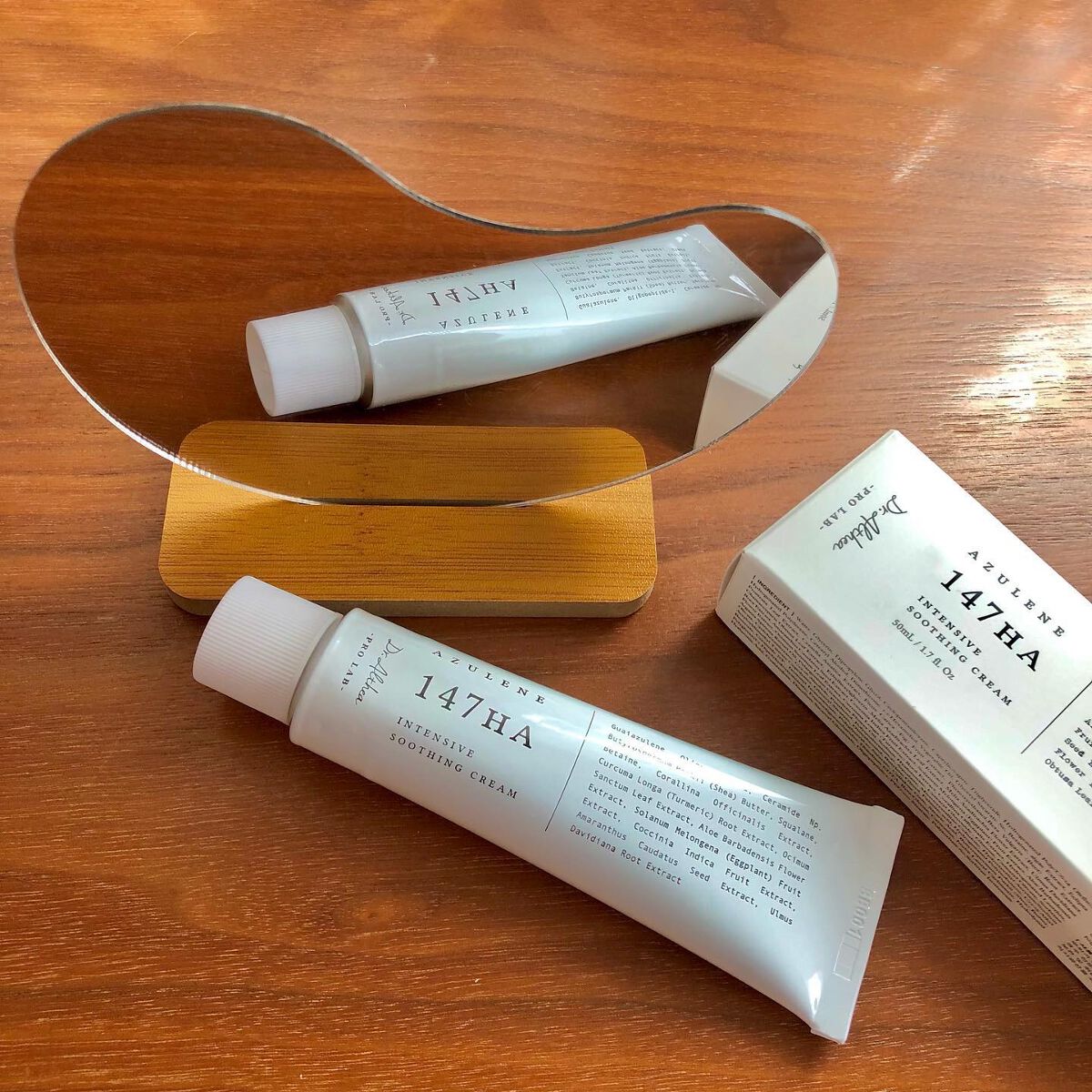 - <50ml> 水、BG、グリセリン、ジメチコン、ヒアルロン酸Na、加水分解ヒアルロン酸、フェノキシエタノール、スクワラン、シア脂、ステアリン酸、エチルヘキシルグリセリン、ツボクサエキス、DPG、ステアリン酸グリセリル、セテアリルアルコール、シクロペンタシロキサン、水添レシチン、ステアリン酸ポリグリセリル-10、セルロースガム、ポリクオタニウム-51、セラミドNP、ニオイテンジクアオイ花油、ベタイン、ポリソルベート60、(アクリル酸ヒドロキシエチル/アクリロイルジメチルタウリンNa)コポリマー、カルノシン、水添ポリイソブテン、アルガニアスピノサ核油、野菜油、セテアリルグルコシド、パンテノール、パルミチン酸、1,2-ヘキサンジオール、イソノナン酸イソノニル、ステアリン酸グリセリル(SE)、イソステアリン酸ソルビタン、トリ(カプリル酸/カプリン酸)グリセリル、水添ポリデセン、安息香酸アルキル(C12-15)、グルコース、ラウリルカルバミン酸イヌリン、結晶セルロース、センニンコク種子エキス、ステアリン酸PEG-100、ジメチコノール、シクロヘキサシロキサン、ヒノキ葉エキス、水添ポリ(C6-14オレフィン)、カミメボウキ葉エキス、β-グルカン、(C12-16)アルコール、オリーブ油脂肪酸セテアリル、オリーブ油脂肪酸ソルビタン、ナス果実エキス、メリアアザジラクタ葉エキス、メリアアザジラクタ花エキス、コクシニアインディカ果実エキス、ウコン根エキス、サンゴモエキス、ステアロイルグルタミン酸2Na、ジポリヒドロキシステアリン酸ポリグリセリル-2、マコンブエキス、ウルムスダビディアナ根エキス、グアイアズレン、タカサブロウ葉エキス、フルクトオリゴ糖、イチジク果実エキス、ビート根エキス、アロエベラ花エキス、オリゴペプチド-1、EDTA-2NA <アズレン 147HA インテンシブ モイスチャー クリーム【旧】> 水、BG、グリセリン、ジメチコン、ヒアルロン酸Na、加水分解ヒアルロン酸、フェノキシエタノール、スクワラン、シア脂、ステアリン酸、エチルヘキシルグリセリン、ツボクサエキス、DPG、ステアリン酸グリセリル、セテアリルアルコール、シクロペンタシロキサン、水添レシチン、ステアリン酸ポリグリセリル-10、セルロースガム、ポリクオタニウム-51、セラミドNP、ニオイテンジクアオイ花油、ベタイン、ポリソルベート60、(アクリル酸ヒドロキシエチル/アクリロイルジメチルタウリンNa)コポリマー、カルノシン、水添ポリイソブテン、アルガニアスピノサ核油、野菜油、セテアリルグルコシド、パンテノール、パルミチン酸、1,2-ヘキサンジオール、イソノナン酸イソノニル、ステアリン酸グリセリル(SE)、イソステアリン酸ソルビタン、トリ(カプリル酸/カプリン酸)グリセリル、水添ポリデセン、安息香酸アルキル(C12-15)、グルコース、ラウリルカルバミン酸イヌリン、結晶セルロース、センニンコク種子エキス、ステアリン酸PEG-100、ジメチコノール、シクロヘキサシロキサン、ヒノキ葉エキス、水添ポリ(C6-14オレフィン)、カミメボウキ葉エキス、β-グルカン、(C12-16)アルコール、オリーブ油脂肪酸セテアリル、オリーブ油脂肪酸ソルビタン、ナス果実エキス、メリアアザジラクタ葉エキス、メリアアザジラクタ花エキス、コクシニアインディカ果実エキス、ウコン根エキス、サンゴモエキス、ステアロイルグルタミン酸2Na、ジポリヒドロキシステアリン酸ポリグリセリル-2、マコンブエキス、ウルムスダビディアナ根エキス、グアイアズレン、タカサブロウ葉エキス、フルクトオリゴ糖、イチジク果実エキス、ビート根エキス、アロエベラ花エキス、オリゴペプチド-1、EDTA-2NA