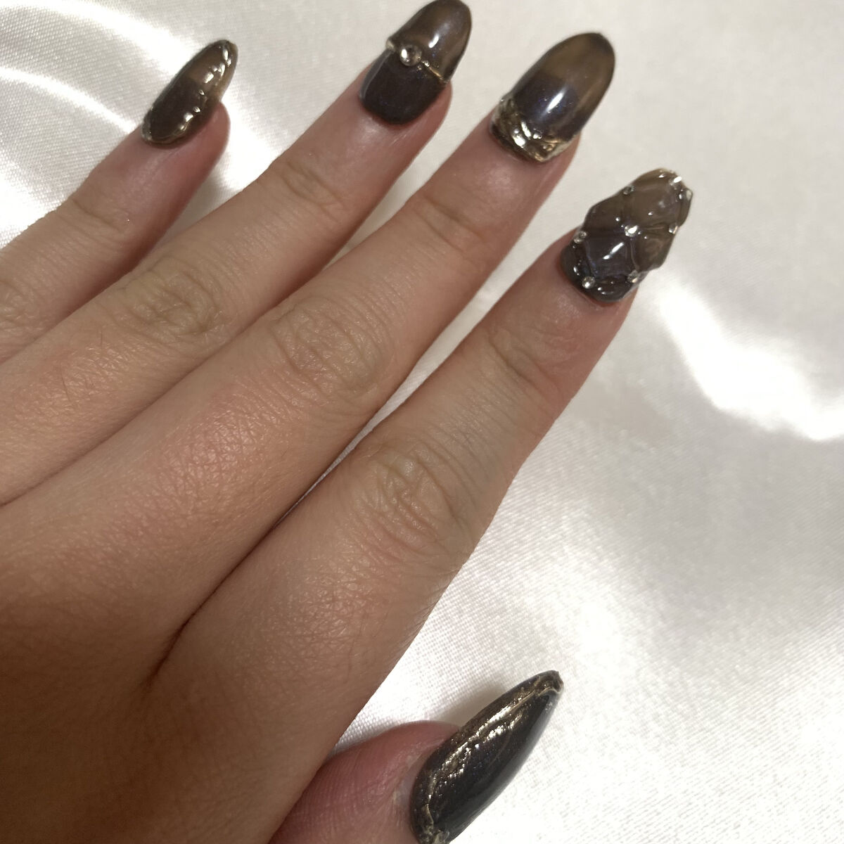 時間なくて後半雑になっちゃったけど、割と気に入ってます。 もう少し大人っぽくシンプルにするつもりが… クリスマスツリーはもう少し大きいパーツ使ってパーツ数減らしたほうが大人っぽいかも…来年はリベンジします🤔 上品な感じにしたかったのでこちらを使いました。 ちょっとお値段SHINEよりは高くなりますが、爪にフィットしてくれて使いやすいです。