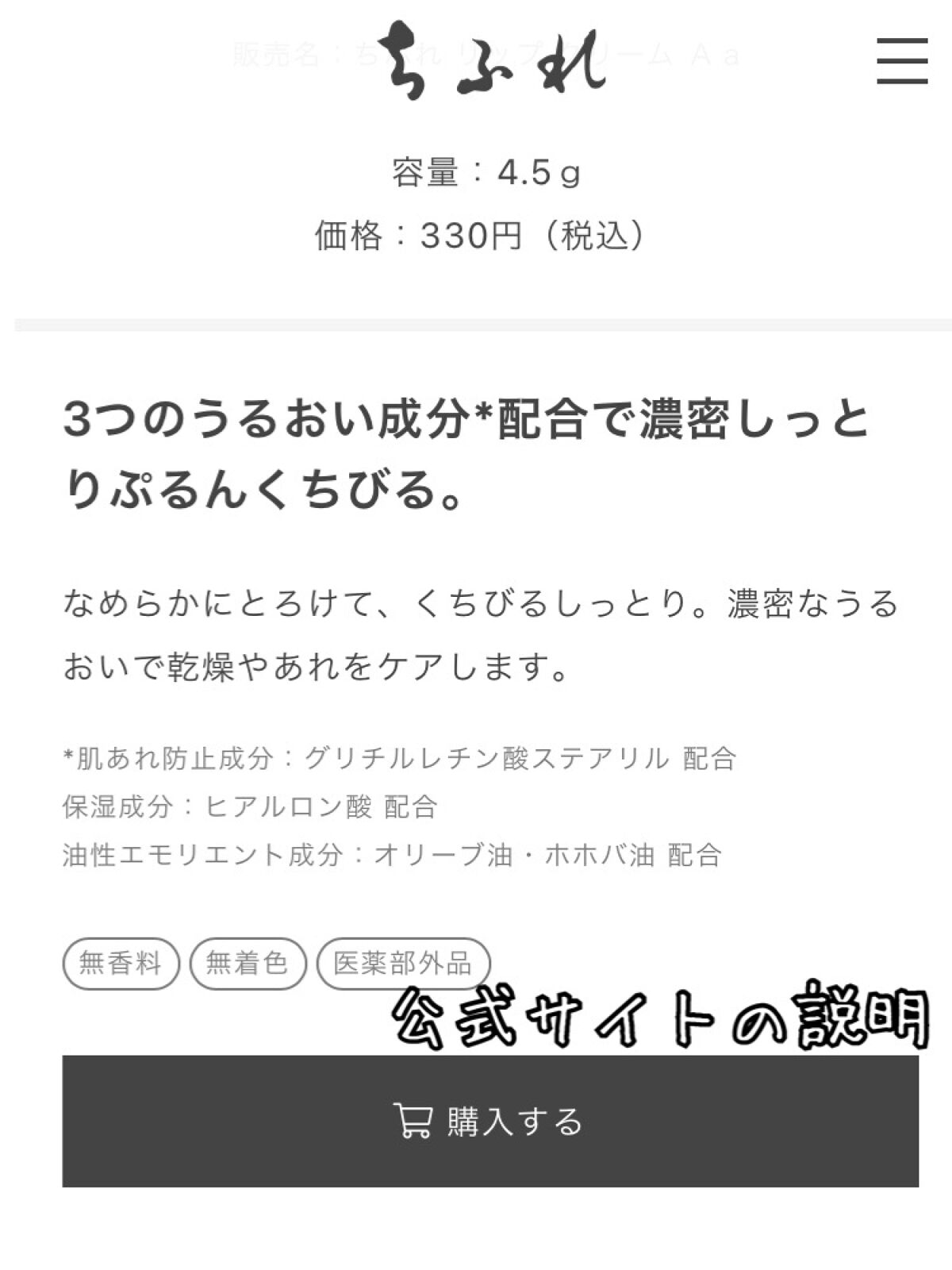 商品詳細情報ちふれ リップ クリーム