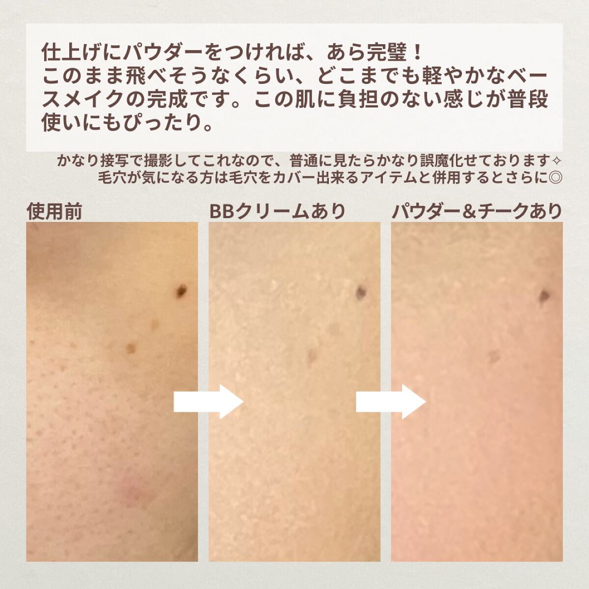 最初は雑誌でおすすめされているのをきっかけに購入したのですが 私のヤバすぎる毛穴が(すっぴんを接写で撮ることがないので、見た時衝撃的すぎて笑った)投稿画像に載せた通り大分目立たなくなるの・・・! ついでにテカリもかなり抑えてくれるので私のような肌悩みを抱えた方にぜひ試してみて欲しいコスメです✧