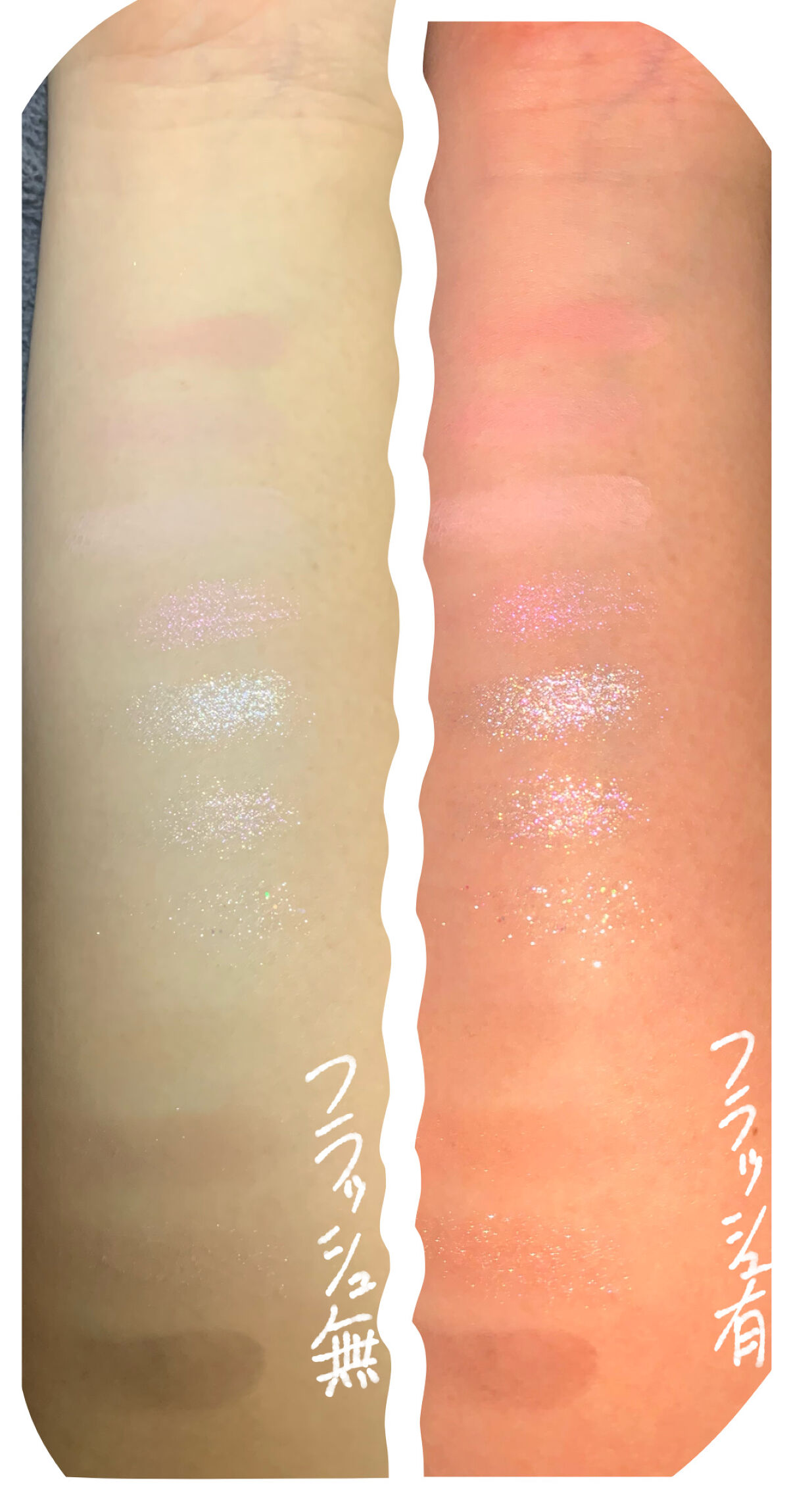 伸びが良くサラサラのテクスチャで軽いつけ心地ではあるんですけど、仕上がりはしっとりします! なんとなく毛穴が埋まって綺麗になる感じがします。 ツヤ。先述した通り、テクスチャはサラサラしてて軽めなつけ心地ですが、仕上がりはしっとり系。