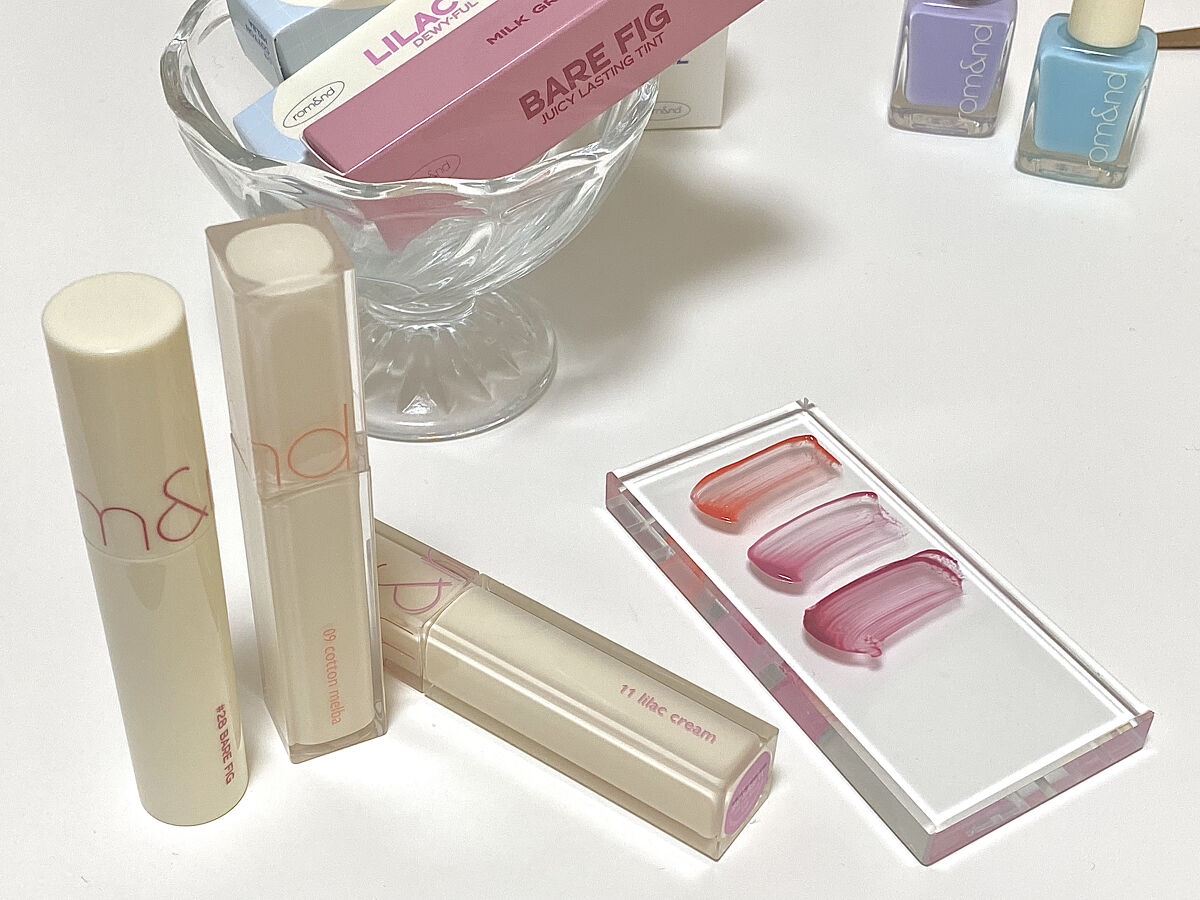 ブルベ夏おすすめカラー🎀 rom&nd ❤︎ ジューシーラスティングティント #06 FIGFIG ¥1,320(税込) デュイフルウォーターティント 06 thulian ¥1,320(税込) グラッシーボムティント BR02 ローズビーン ¥780(税込)