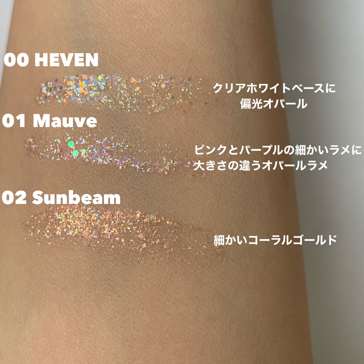 Dear.Aグリッターアイシャドウ00HEAVEN,01MAUVE,02SUNBEAMDear.Aさまからいただきました。Instagramでの当選品です!!ありがとうございます💕00HEAVENクリアホワイト丸形スパンコール角度によって様々...