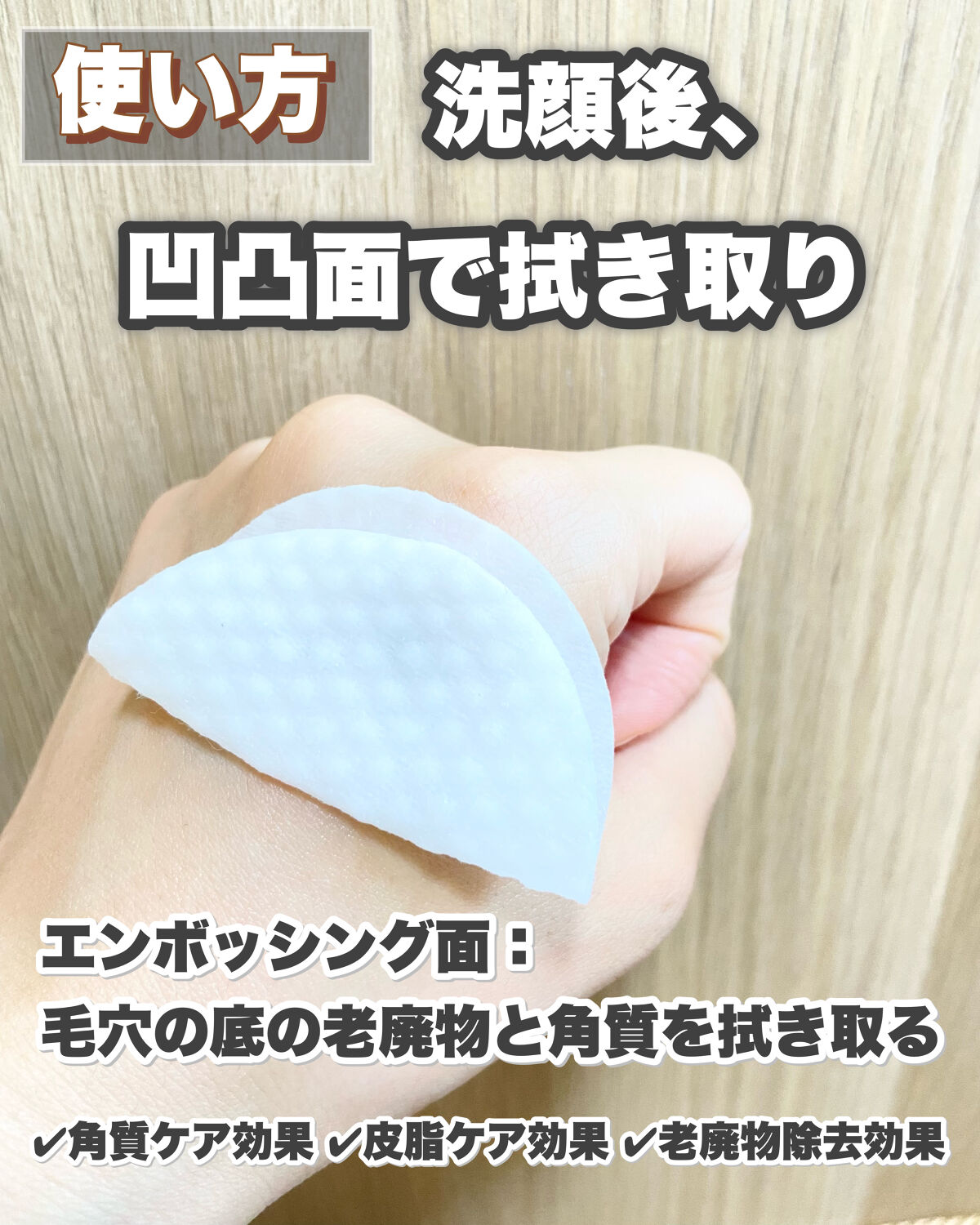 - 毛穴の汚れを拭き取り、肌を引き締めることで肌をなめらかに整える拭き取りパッドです。 しっとりしたエッセンスがたっぷり含まれ、肌のキメを整えつつ、自然なツヤ肌に仕上げます。 <使用方法> 洗顔後、パフのエンボシング面を使い、目と口周りを避けて顔全体を拭き取ります。 裏の軟らかい面を使い、もう一度拭き取りながら軽くパッティングしてください。