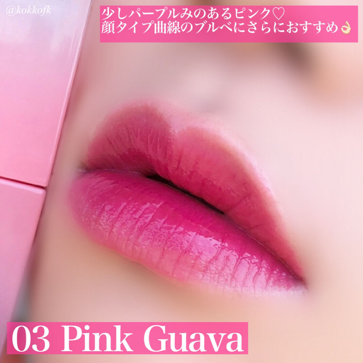- スイートなフルーツカラーが薄く密着して、ベタつきを防いで水分たっぷりの果汁コーディングを完成させます。 ウォームトーンからクールトーンまで揃い、顔色を華やかに照らしてくれます。 【Point1】ミルキーなローズカラーが唇の本来のカラー感ときれいに馴染みます。 【Point2】水分を含んだしっとりとしたフォーミュラがベタつかず密着してきれいに満たされる水分膜コーティング。ソフトなミルキーローズカラーが時間が経つほど奥ゆかしいディープローズカラーに変化します。 【Point3】1日中透明で澄んだ生気ティント。発色そのまま着色して長持ちする鮮やかなカラー感を演出します。