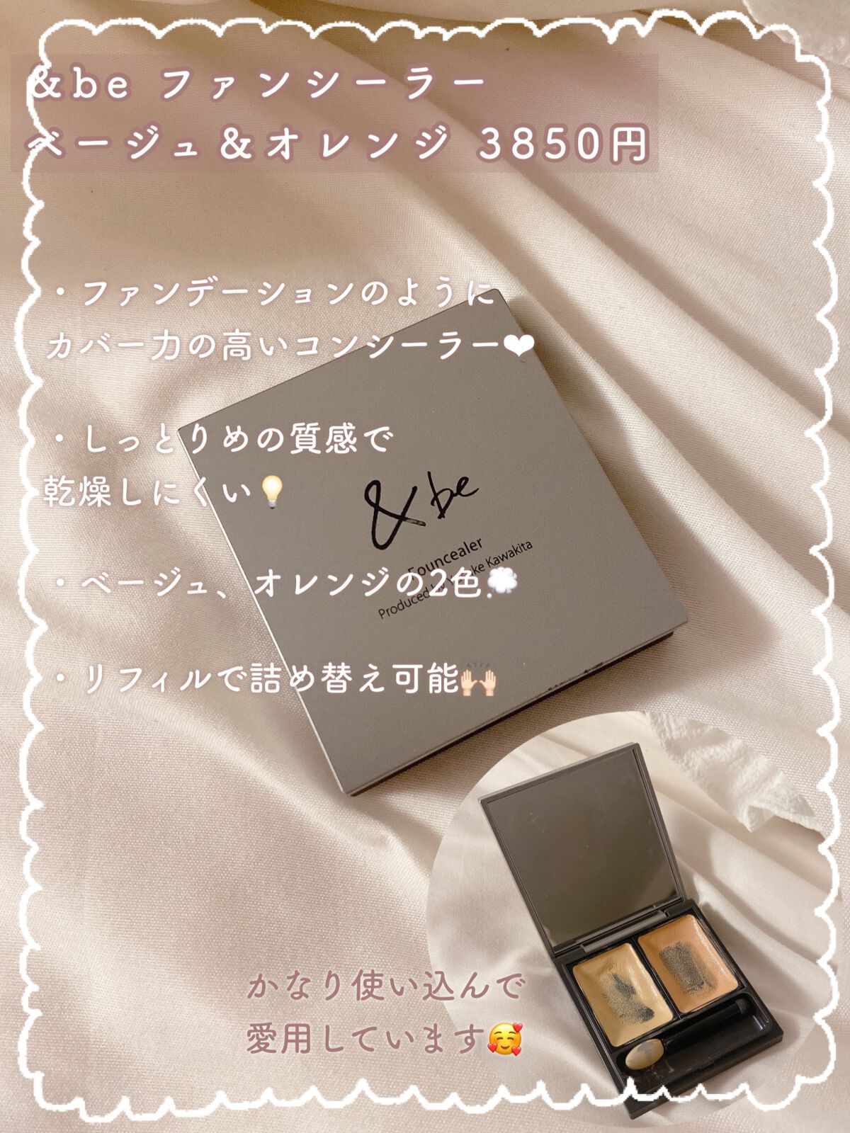 &beファンシーラーライトピンク&オレンジSPF20・PA++クリームファンデーションのような伸びのよさと、コンシーラーのカバー力を持ち合わせたハイブリットパレット♡クマをカバーするオレンジと気になる部分をカバーするスキンカラーの2色セット。...