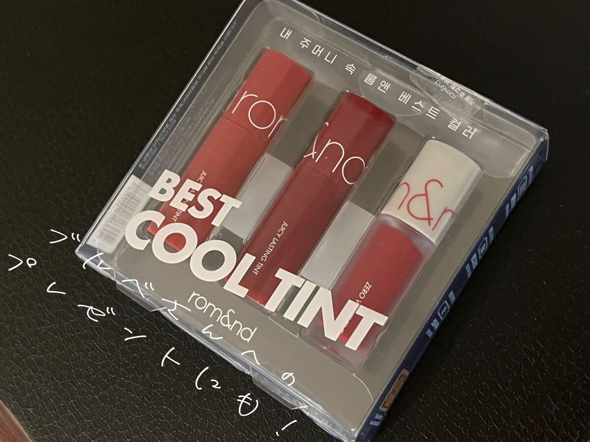 ロムアンドの人気リップ3本をミニサイズにしたキット♡ 私はイエベ春なんだけど、ブルベ向けのCoolカラーに挑戦したくて「02 クールトーン」を買ったよ! ツヤ2本とマット1本で質感も楽しめる♡ カラーはほんのり青みのある涼やかな華やかレッド系。 テクスチャーはするんとなめらかに密着してくれたよ🥹💕