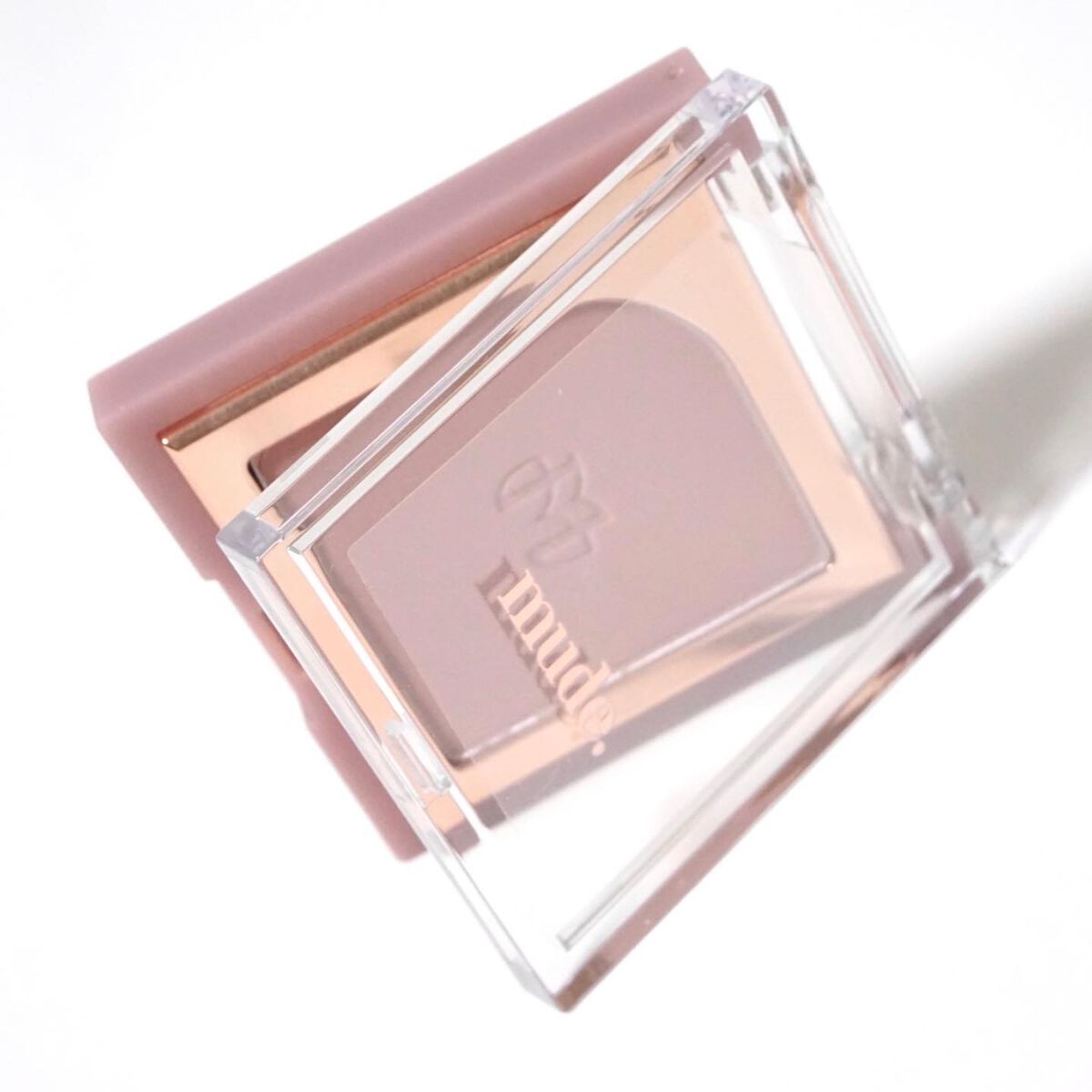 くすみグレー系のパレットが欲しく購入し、家に届いて開封した時意外とブラウン感が強くて失敗したかな?と思いましたが、瞼に塗るとくすみグレージュに発色。 左上のベースカラーはほとんど発色はないといってもいいくらい、他2つのマットカラーは発色がよく、ラメシャドウは割と煌めきが強い繊細ラメが使用されており、ギラッと輝く印象を受けました。 マットシャドウはrom&nd特有の比較的柔らかめでサラッとした質感、ラメシャドウは繊細ラメでサラッとしていて思ったよりラメ飛びはしない印象です。
