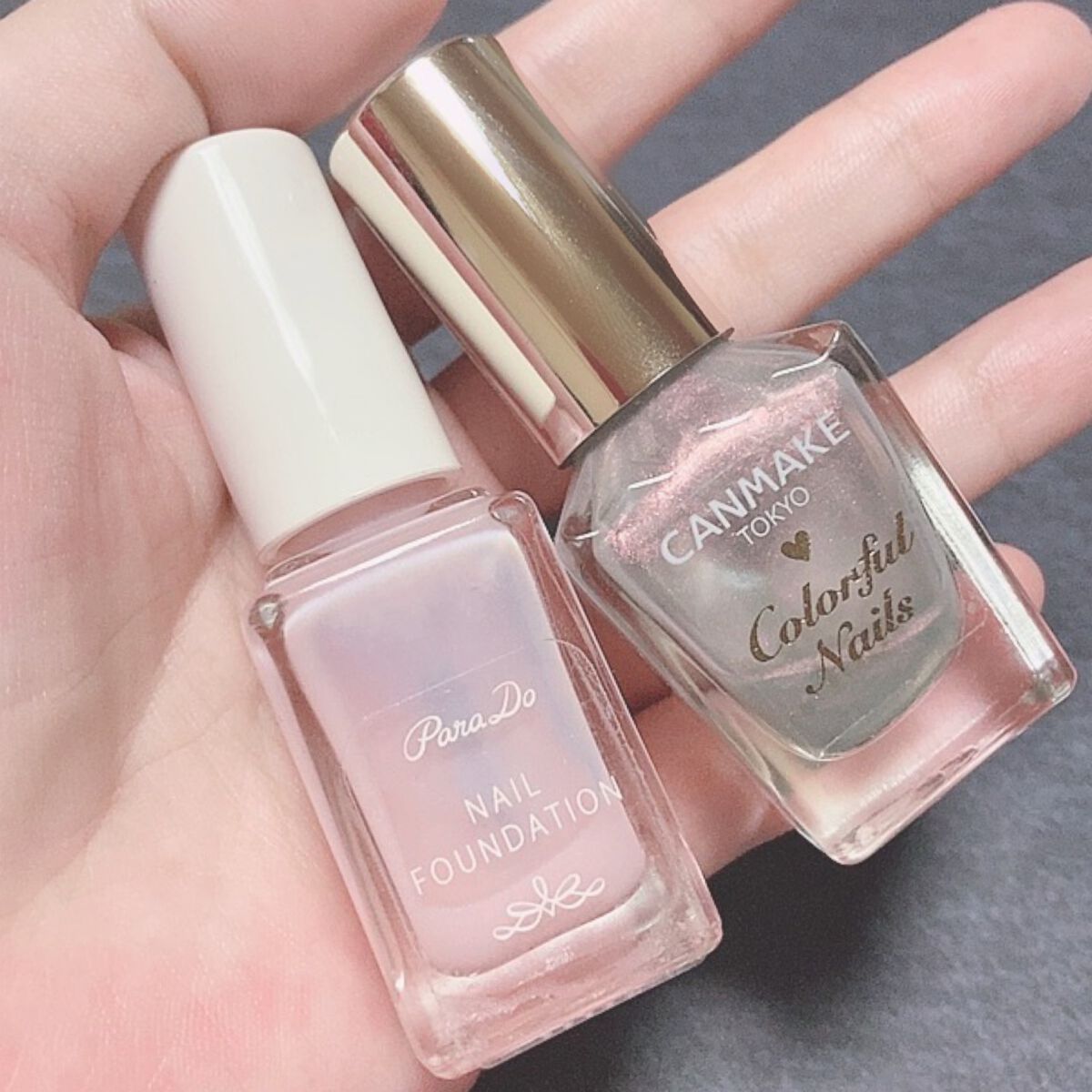 CANMAKEのオールスター揃いで、ナチュラルなデートネイルにしたよ♡今日は相方の母とデート❤そんな時はふんわりやさしいカラーと少しのオシャレ感出したいっ!!グラデーションは手が込んでる風が出せるので、簡単に手早く出来るファンデーションカラー...
