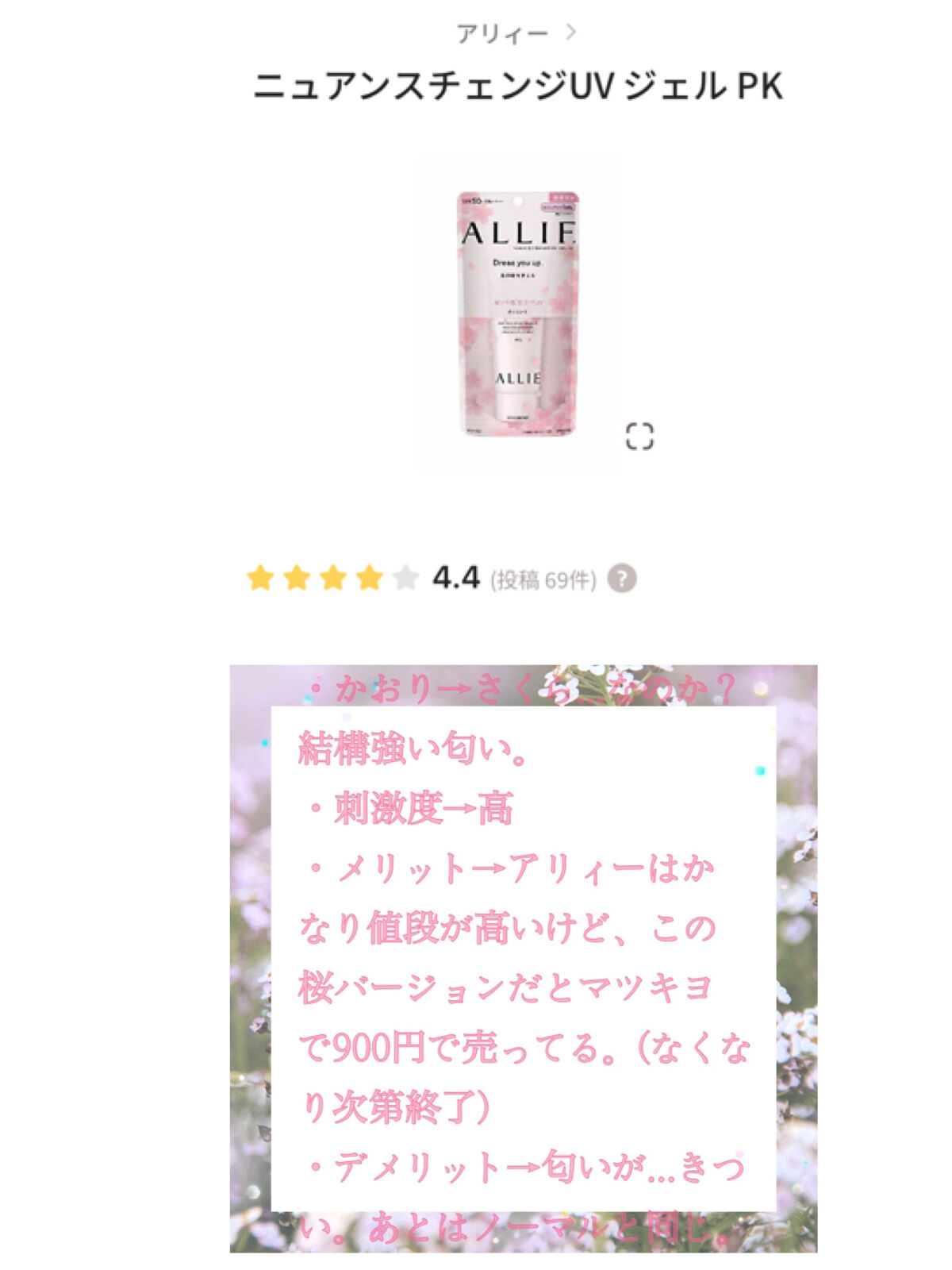 | 日焼け止め・UVケアランキング第106位 | ちゃんと塗れてる?ってくらい サラサラのつけ心地ですよ🙆♀️💗! | 詳細を見る | |