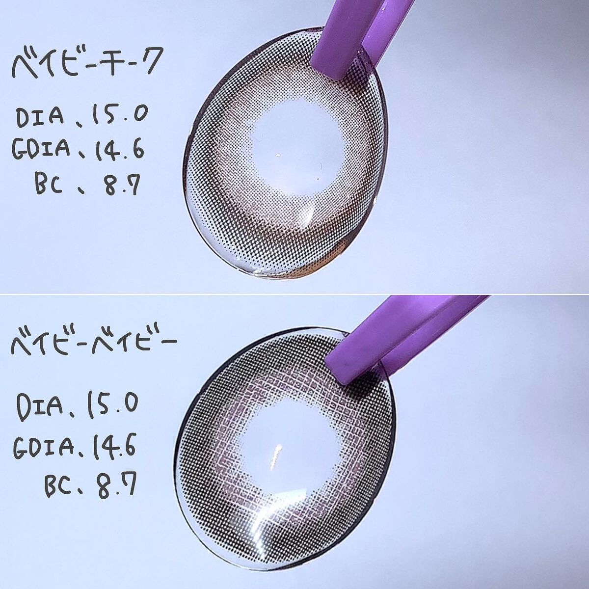 パッケージとめちゃめちゃ可愛い♡ ベイビーチーク ピンクブラウンと馴染みやすく あざとさ全開デスッッッ ベイビーベイビー パッと印象丸替わり くりっくりで可愛いデカ目に! 日本承認レンズサイズ国内最大級らしく めちゃめちゃ大きめのカラコンになってます! つけてびっくり くりっくりでめちゃめちゃ可愛い! レンズも柔らかく目にフィット♡ 痛くなりにくかったです! 大き目に見せてくれるので 大きいカラコンお探しの方 ぜひチェックしてみてください✔✨