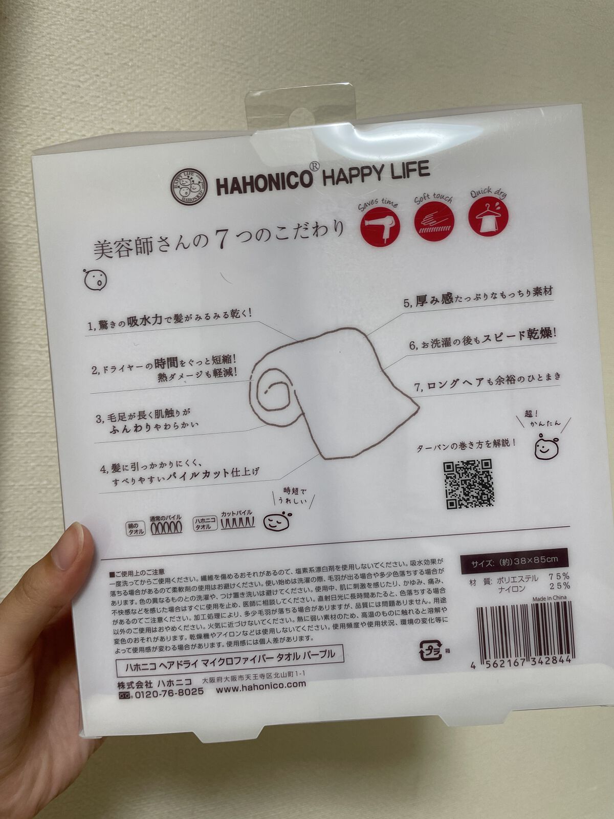 商品詳細情報ハホニコハッピーライフ ヘアドライマイクロファイバータオル