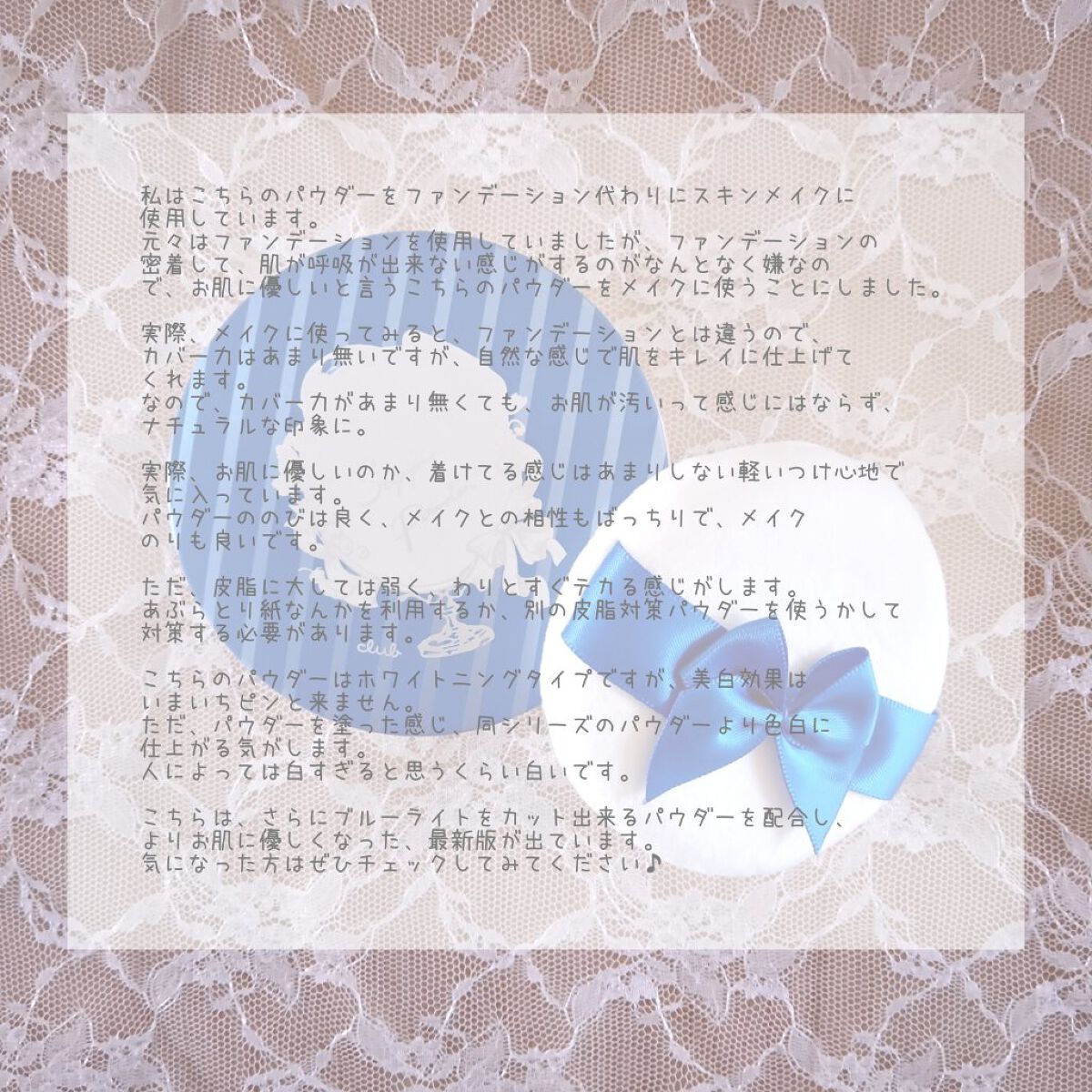 | プレストパウダーランキング第122位 | パフにリボンがついていてかわいい♡ナイトケアとして化粧水後のべたつきが嫌な方にもおすすめ! | 詳細を見る | |