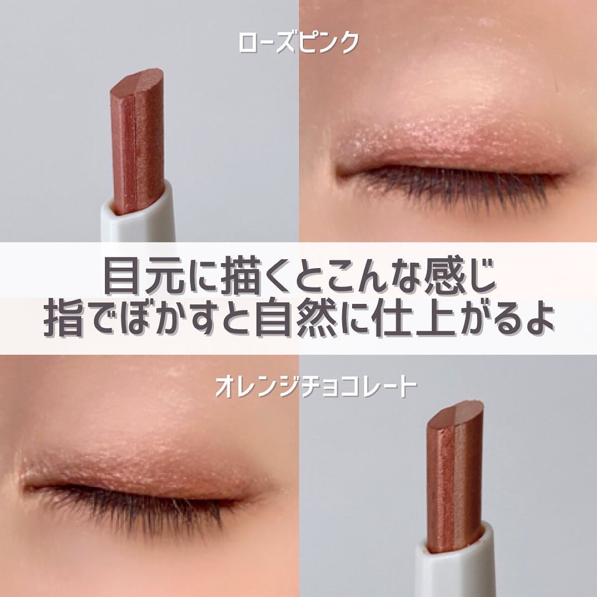 #ダイソーコスメ#アンドドット#アイシャドウスティック買ってみたよ👍✳️なめらかな描き心地のラメ入りアイシャドウこれは買ってよかった👍😍カラーはレッドブラウンというカラー🩷つけやすいカラーだし、色味も気に入った。細かい感じのゴールドっぽいラメ...