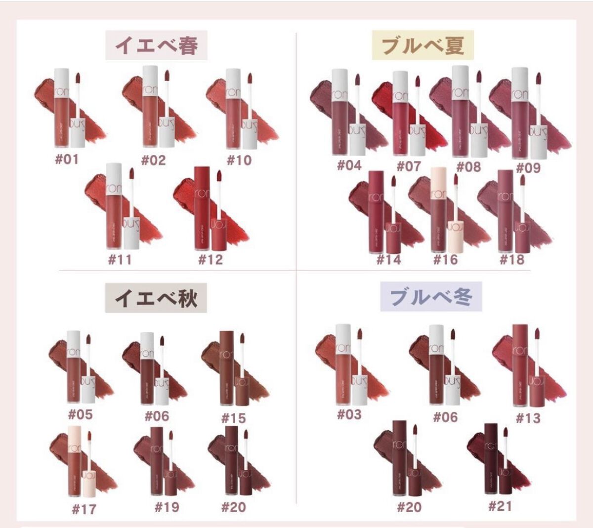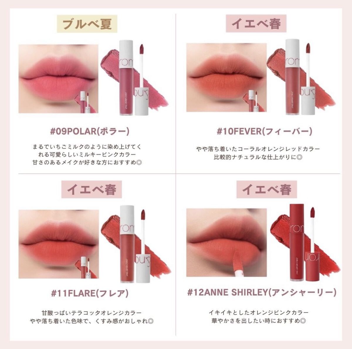 【使った商品】rom&ndゼロベルベットティント【色味】パーソナルカラーによって選べる!【質感】マット...
