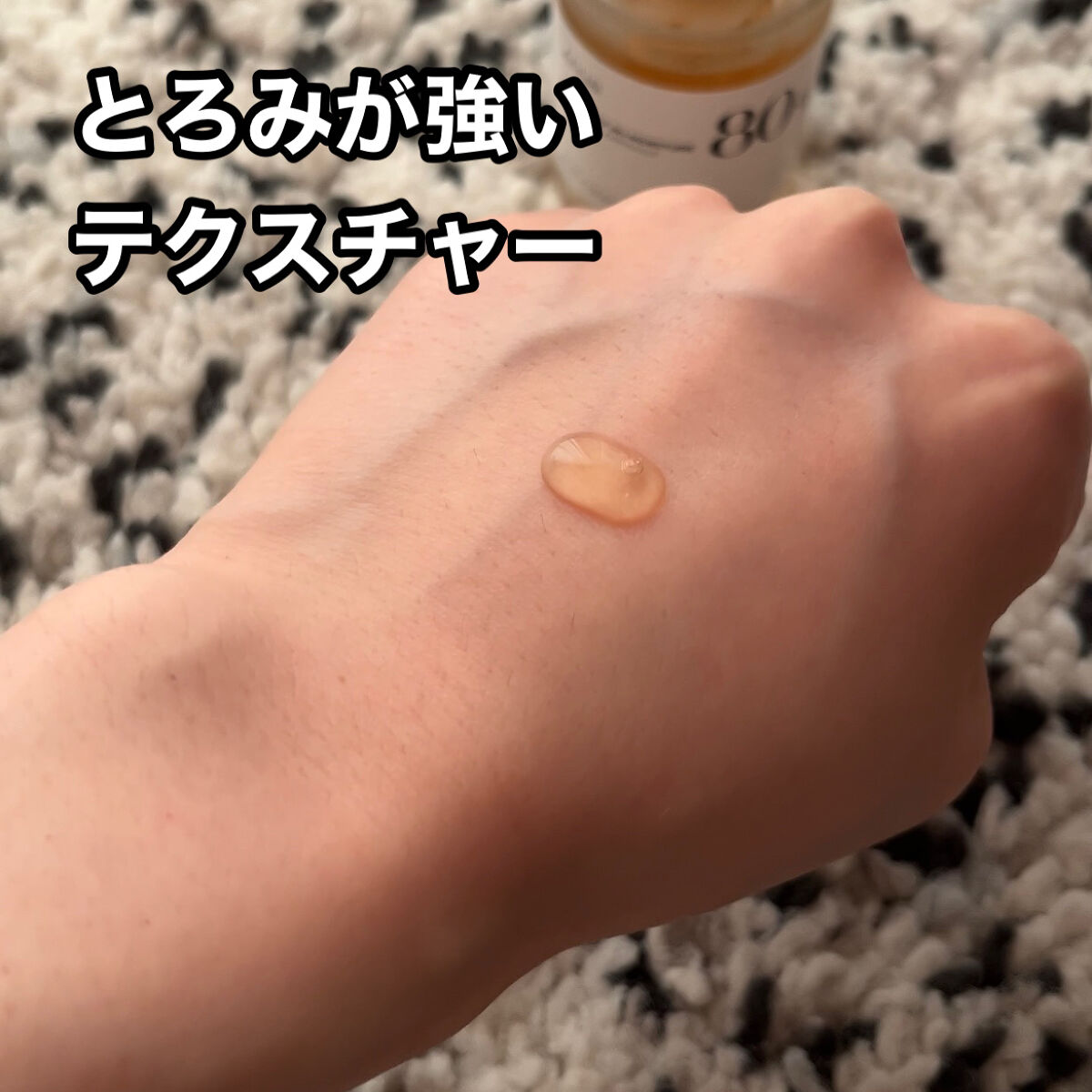 テクスチャーは軽いオイル見たいな感じです。 ニキビ跡がかなり改善されたので使用を辞めましたが、また使いたくなったので戻ってきました笑 肌に乗せた時じんわり温かく感じるため、敏感肌の方は要注意です⚠️ 開封後の保管場所は冷蔵庫必須!! AHA、BHA、レチノールといった、角質ケアとの併用 朝にこの美容液を使うと紫外線が吸収される
