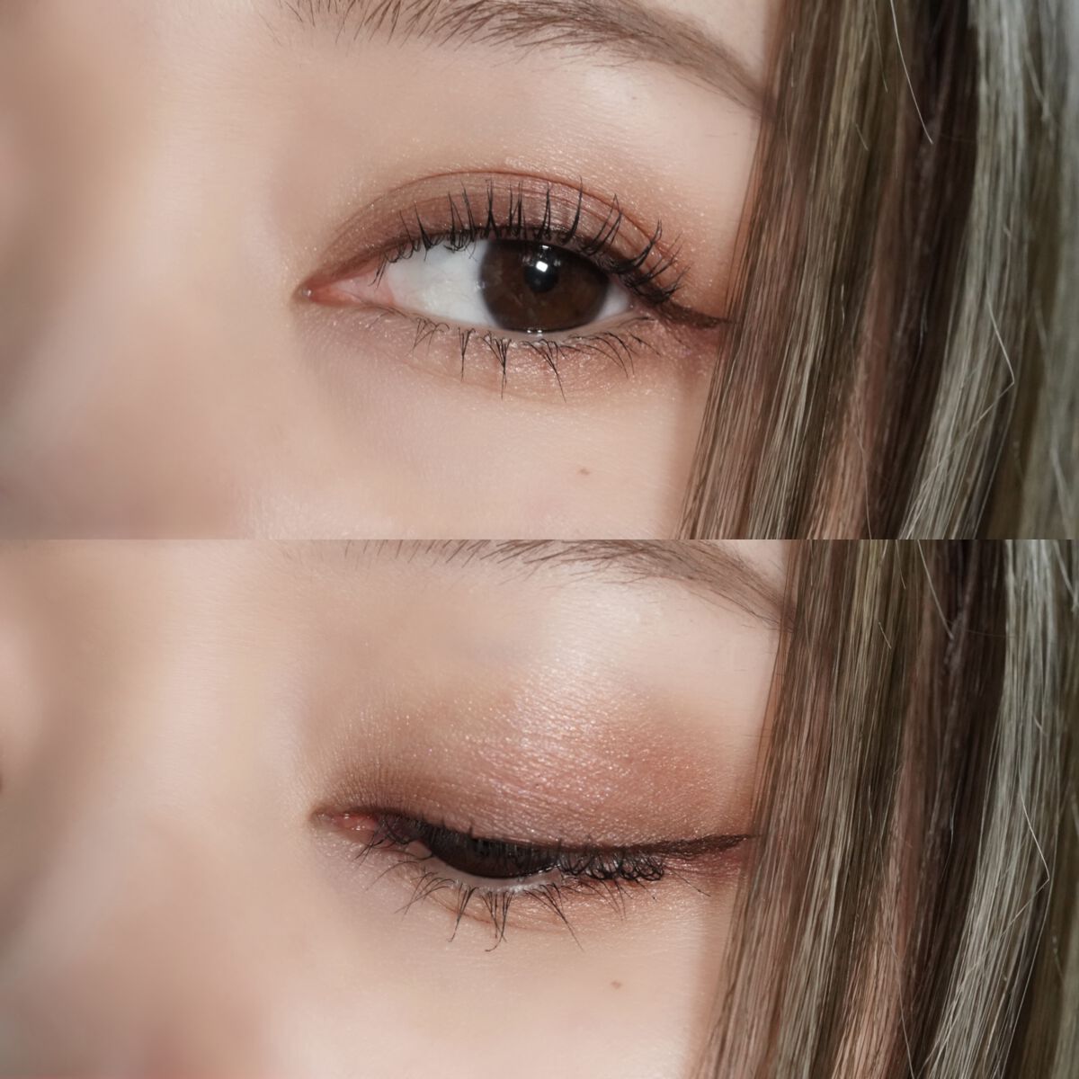 よくパレットのなかで明るいカラーをベースにまぶたに広く塗ることが多いのですが、パール感のあるカラーを避ける🙆♀️! パール感たっぷりの明るいカラーは涙袋に使うぐらい光を集めてぷっくり見せてくれるので、まぶたに広く使うと腫れぼったく見えがち😓 目元を明るくみせてくれたり、次に使うアイシャドウをぼかしやすくしてくれるけど、すっ飛ばしてメインのカラーを塗っちゃう✊🏻❤️🔥 涙袋にはたっぷり塗ってぷっくり見せる🙆♀️💕 シルキースフレアイズのマットタイプはすごく優れているな〜と感じました☺️💗 赤やオレンジなどは、入れすぎると腫れぼったく見えやすいので、見せたいカラーは下まぶた目尻にのせて色をたのしむ♡♡ パール感なしの透けマットだけじゃ物足りない… そう感じさせない華やかなラメが左上に入っているので黒目上と涙袋にのせるとすごく可愛い仕上がりに😍! 厄介な左右差のお陰でマットアイシャドウが好きになりました😌💕
