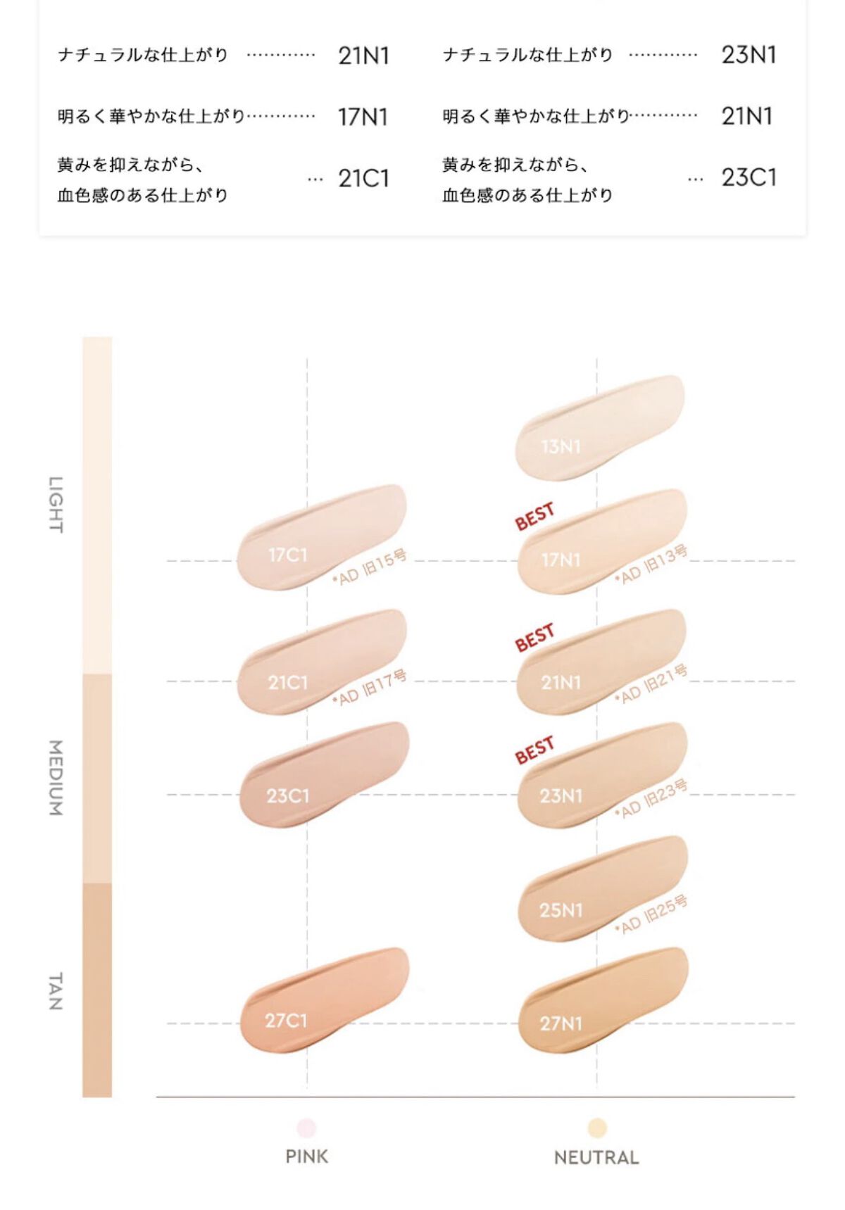 - きめ細かく肌にフィットして密着するレイヤーレスカバー 素肌のように軽いベルベット肌が24時間*1つづくクッションファンデ 1.Layerless Matte Cover 薄く均一なカバー力を叶える「マグネフィットパウダー」と 肌の凸凹にきめ細かくなめらかに密着する「3レイヤーフィルム」を採用 ハイカバーなのに軽やかなフィット感 2.24 Hour High-End Stay 4つの特性で叶える完成度の高いフローレス肌が24時間*1持続 マスクプルーフ効果*1 3.Asian Skin Fit Shade アジア人女性の肌に合わせて設計された全7色のシェードバリエーション クッションファンデーションに最適な、少し明るめのブルーベース~ニュートラルトーン さまざまな肌色にマッチするシェードで、もっとも自分らしい肌トーンを演出