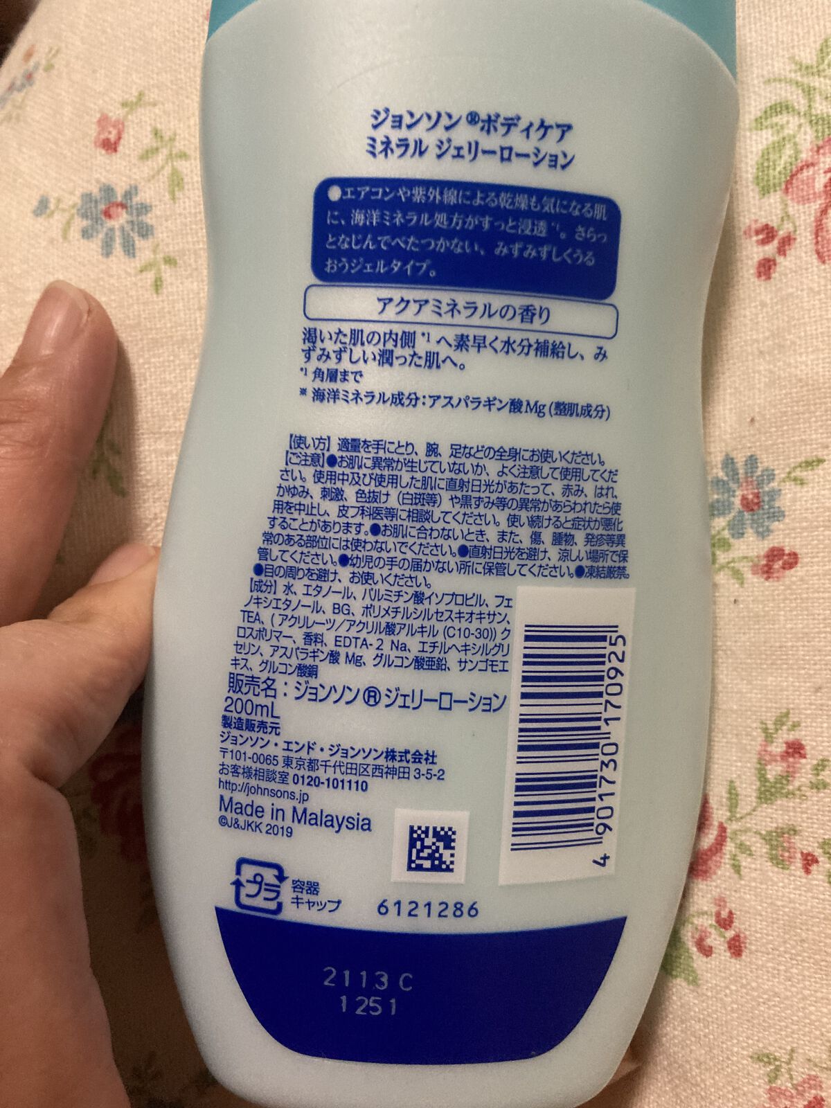 ボディクリーム苦手民にも!「ジョンソンボディケアミネラルジェリーローション」サラッと潤うボディローション。私は基本ボディクリーム苦手で部分的にしか使いません。でも、これなら全身使えちゃった。ジェルタイプのローションでさっぱりサラサラ。秋口の涼...