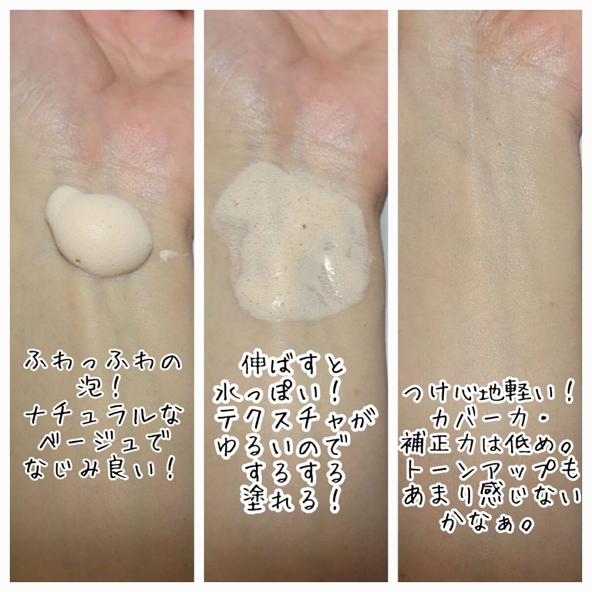 - 肌にスーッと溶け込むように素早く馴染んで密着する、新感触の泡状下地。 ふわふわの泡が瞬時*に肌にフィットして、毛穴や肌の凹凸、色ムラを補正*するCCベース。化粧崩れやテカリを防ぎ、化粧のノリとモチをアップ。泡状だから実現した厚塗り感なく軽いつけ心地で、自然にカバーしてトーンアップ*。内側から光輝くような、みずみずしく艶やかな美肌へと導きます。 なりたい肌に合わせて選べる2色展開。 ブルベ肌におすすめのナチュラルベージュと、イエベ肌におすすめのバナナオークル。SPF37・PA+++ * メイク効果による
