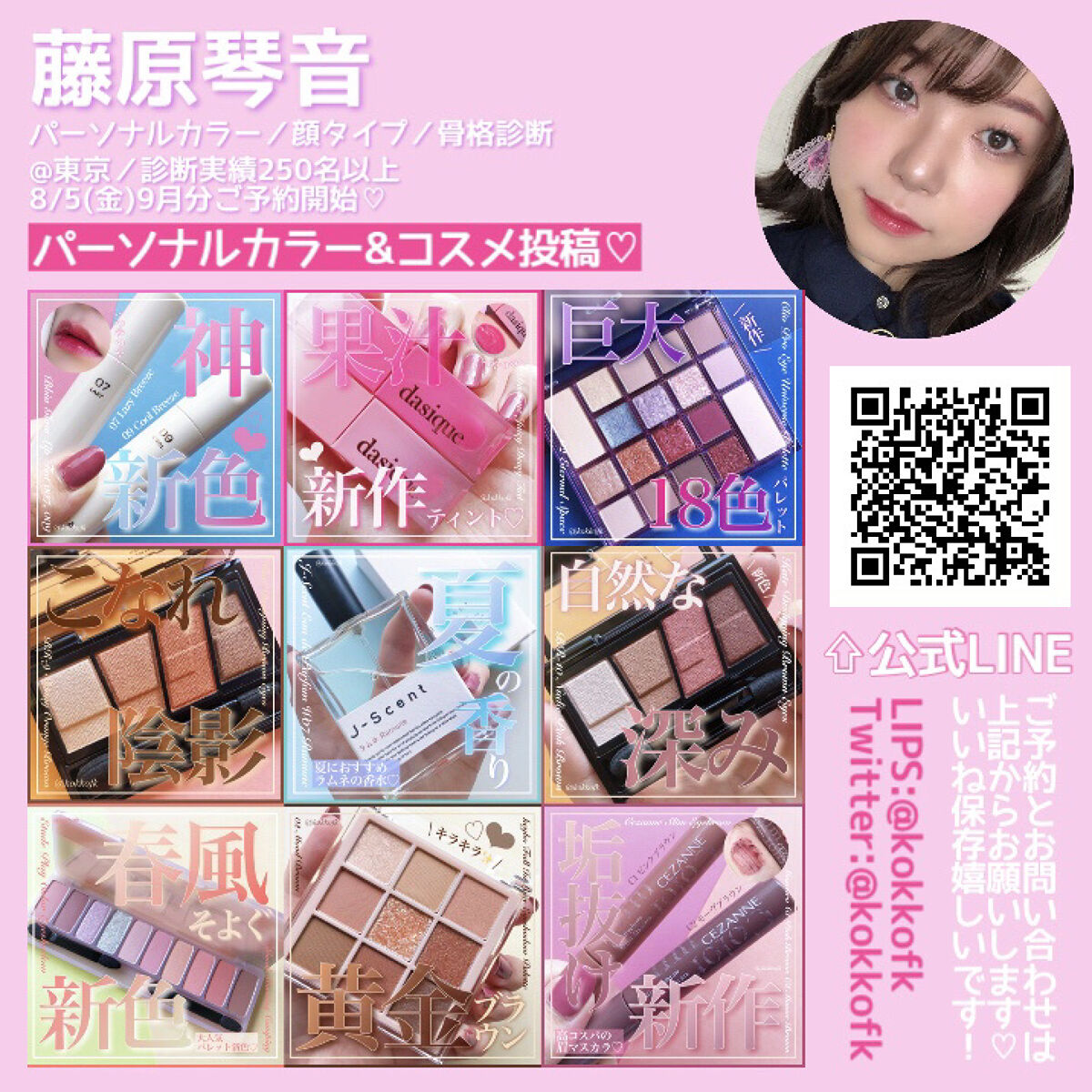 薄く唇に密着する新作マットティント。 マットなのにかなりしっとりとしていて 乾燥を感じなくてびっくりでした! 一気にこなれ感が出るトレンドカラーです♡ やや青みの華やかローズレッド 公式画像より鮮やかめに感じました。 やや黄みの強くて深いオレンジレッド ストロングオータムに超激推しです! やや黄みの非常に深く濃いダークブラウン ディープオータムに激推しです! かわいい雰囲気になれるピンクリップです♡ やや青みの柔らかいくすみピンクベージュ ミューテッドサマーにおすすめです! 青みの落ち着いたローズピンク やや青みのとても鮮やかなビビッドレッド ビビッドウィンターに特におすすめ! 既存マットティントよりもさらに ふわふわなマット感が魅力のリップで、 軽くティッシュオフしてもほとんど落ちない◎ マスクにも激推しのティントなので、 ぜひ皆さんもチェックしてみてね❤︎