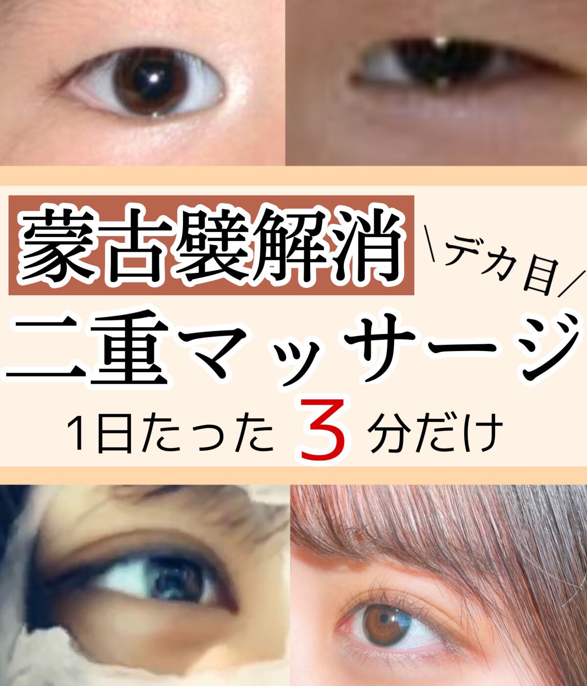 私はかなり存在感のある蒙古襞がありました😣 でも、二重の癖をつけるためのマッサージと並行してこのマッサージも約1年続けて来て、今では蒙古襞は昔と比べると無くなってきて目の形も変わりました!! 蒙古襞が無いと二重の幅も広くできるので今は末広から並行二重を目指しています💕 とっても簡単なマッサージなんですけど、続けることで目頭がしっかり開いてくるので、まずは1ヶ月続けて見ましょう♡♡ 私は朝メイク前に二重マッサージと並行してやっています!! また、アイプチをするとより瞼が上に引っ張られるので蒙古襞も無くしやすいと思います💕