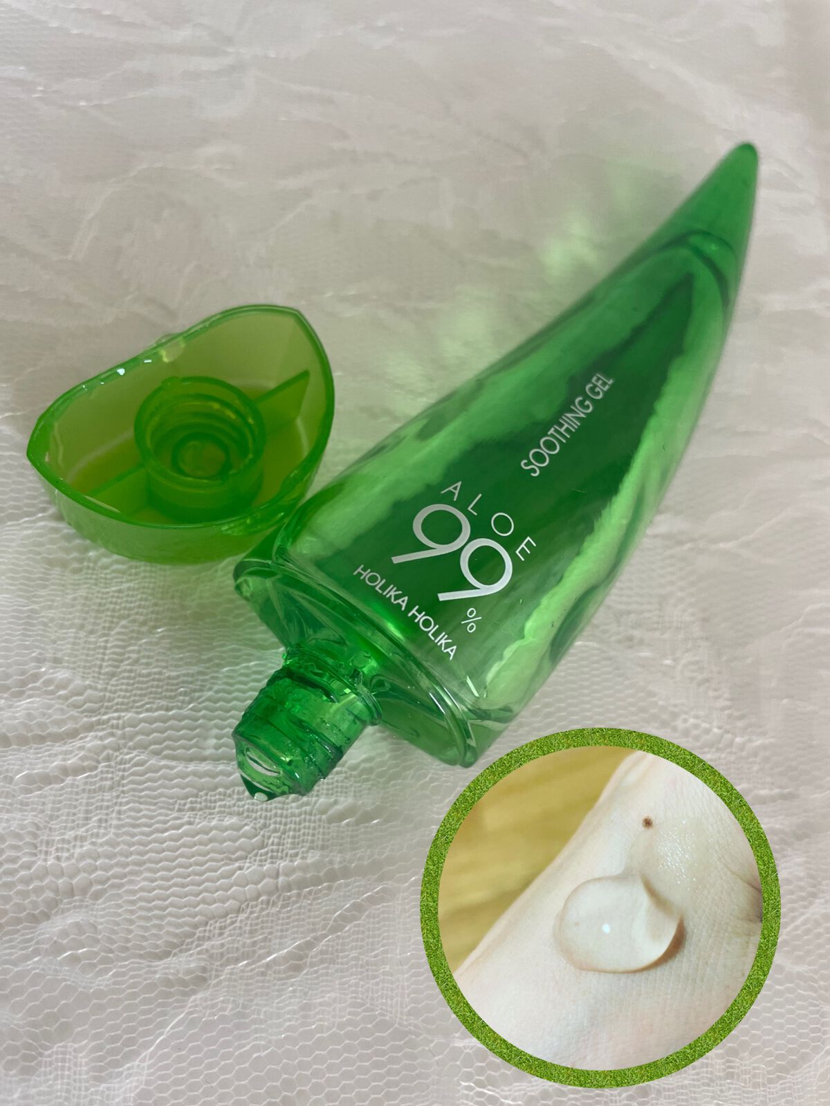 HOLIKAHOLIKA(ホリカホリカ)アロエ99%スージングジェル55ml(微香性)LIPSショッピングで購入しました。55mlのミニサイズなんですが、お安いです。税抜380円。済州島原産のアロエベラ液汁を贅沢に99%配合しているそう...