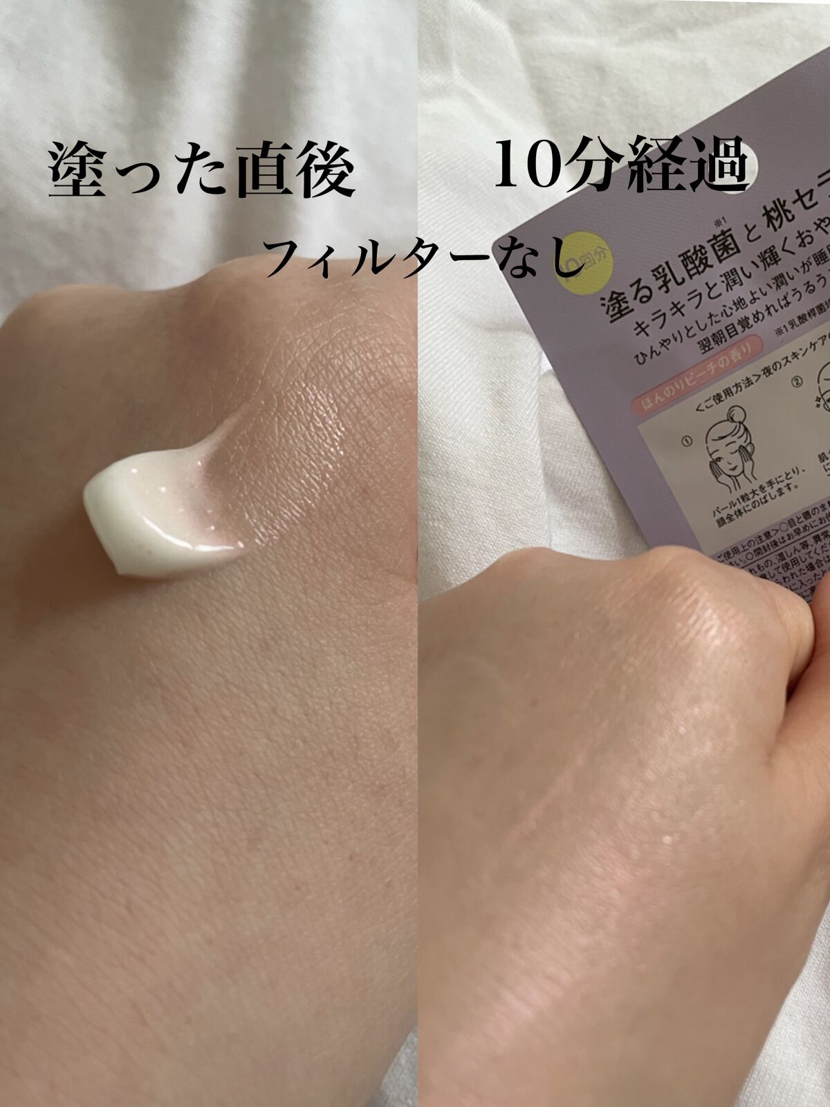 - スリーピングマスク 塗る乳酸菌※1と桃セラミド※2含有 翌朝 はっとするうる桃肌 10回分洗い流し不要 キラキラと潤い輝くおやすみマスク ひんやりとした心地よい潤いが睡眠中の乾燥を防いで翌朝目覚めればうるうるの桃肌に。 ※1乳酸桿菌培養溶解質 ※2モモ果汁(以上、全て保湿)