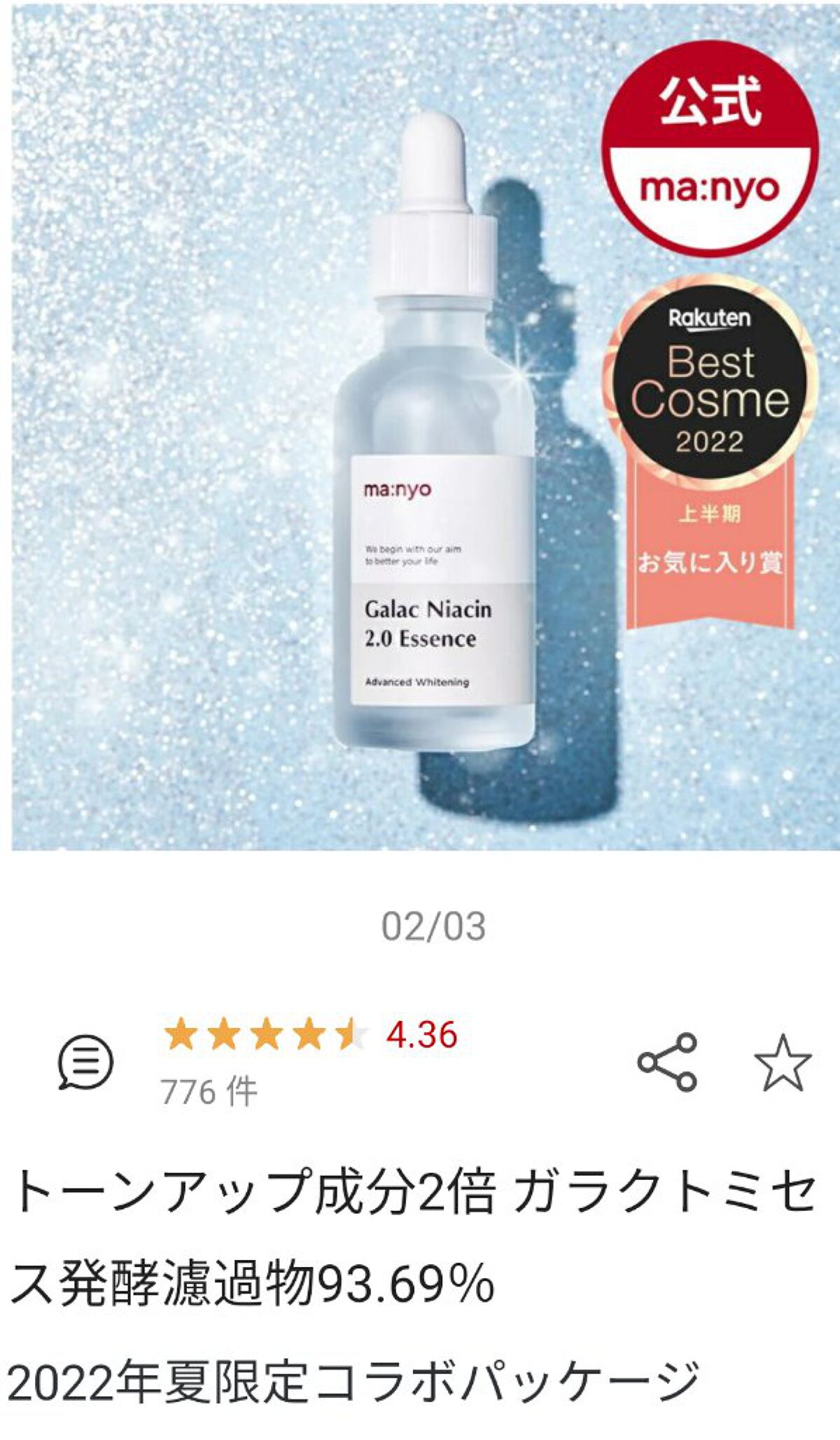- ビタミン、アミノ酸などの有効成分を豊富に含んだガラクトミセスが93%配合され、皮脂・水分バランスの調節、毛穴ケア、トーンアップケアをサポート。ナイアシンアミド4%配合でメラニンの生成を防ぐ濃縮美容液です。水のような軽いテクスチャーでべたつきません。愛用者からは「2週間で肌の変化を実感した」との声が多く届いています。